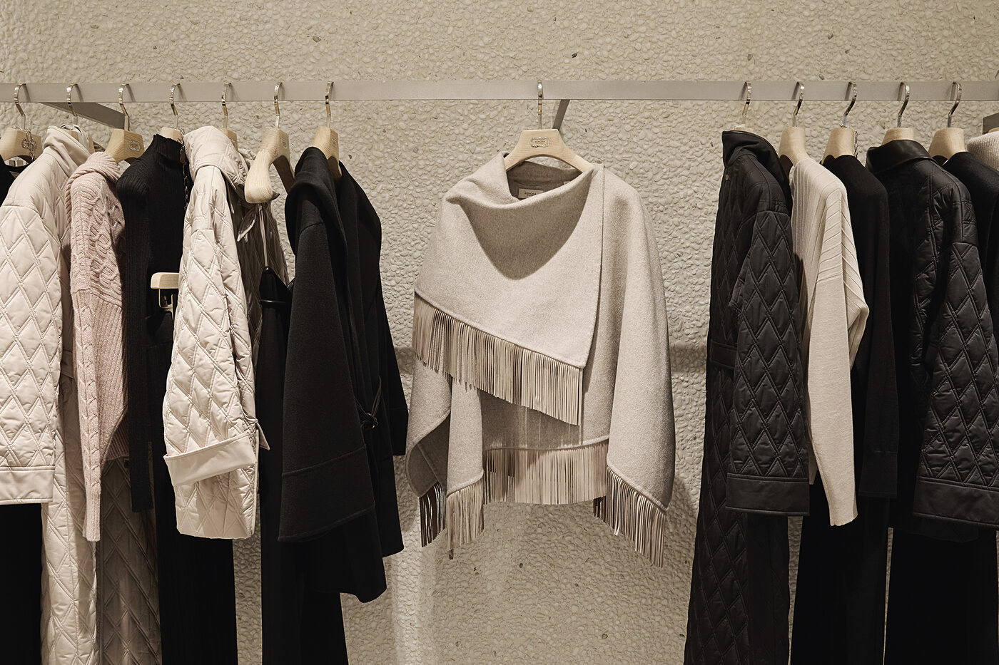 캐시미어, 알파카, 고급 울 소재를 중심으로 작업했다. 전통적인 아우터웨어를 새롭게 재해석한 퀼팅 텍스처를 사용하기도 하고, 더블 페이스 패브릭과 섬세한 기술로 마감해 클래식한 소재에 가벼움과 기능성을 더했다.