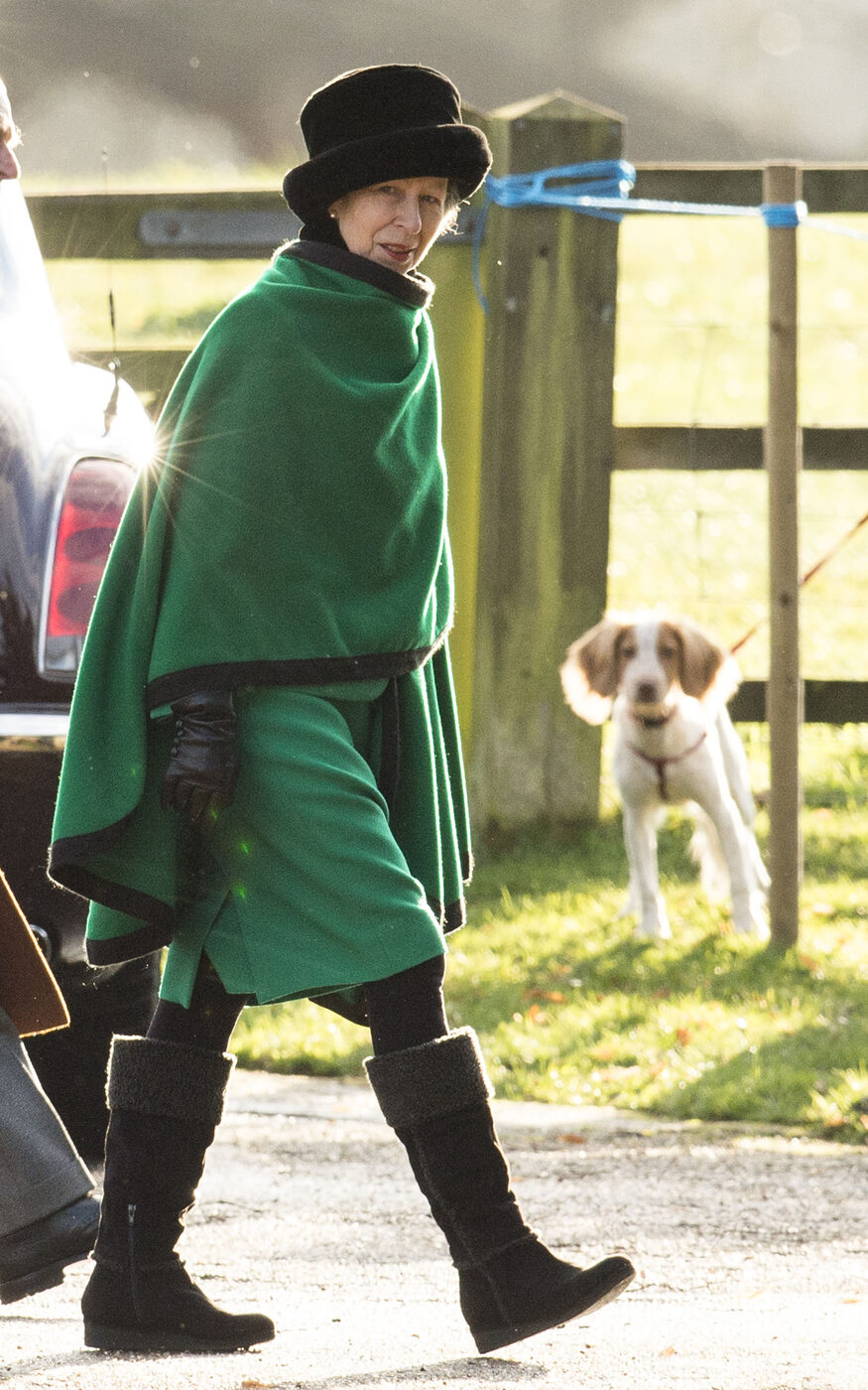 아마도 세상에서 가장 엘레강스한 할머니일 듯한, 앤 공주는 최근 유행하는 케이프 또한 자신만의 색을 더한 가장 고귀한 방식으로 연출했습니다. 초록색의 스커트 위에 같은 컬러의 커다란 케이프를 둘러주었죠. 퍼 모자와 장갑, 부츠 등을 블랙으로 통일해 크리스마스 시즌의 상징적인 룩을 완성했습니다.