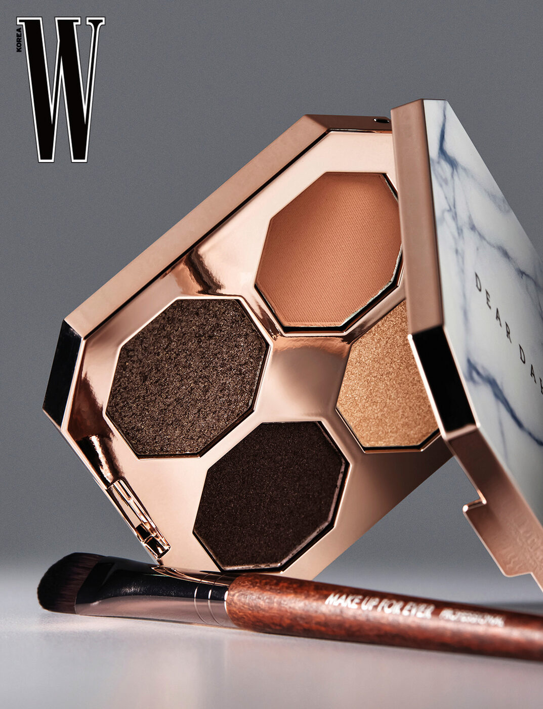“펄 입자가 많은 아이섀도는 마치 컨실러 브러시처럼 적당히 납작하고 힘이 있어야 밀착력을 높일 수 있다. 얇은 눈꺼풀 위에 제형을 붙이듯 아이섀도를 펴 바르고, 브러시에 픽서를 분사한 다음 마무리하면 완성도를 높일 수 있다.” – 공혜련(메이크업 아티스트)