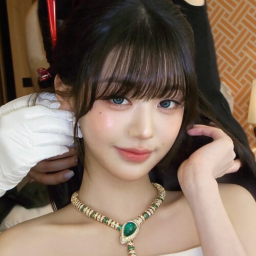 요즘 지젤이 푹 빠져 있는 헤어 스타일이죠. 도회적인 세련미와 우아한 분위기가 느껴지는 7:3 옆 가르마 스타일링입니다. 살짝 비켜간 가르마 라인이 얼굴형을 한층 갸름하게 보이도록 만들어 주는데요. 특히 포멀하거나 드레시한 룩에 매치하면 특유의 클래식한 분위기가 배가됩니다.