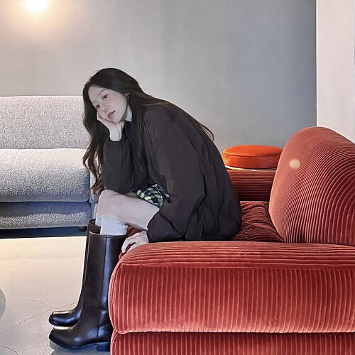 드레이프 디자인을 데일리 룩에 활용할 땐 이렇게! 깊게 파인 톱과 배기한 팬츠의 자연스러운 주름이 인상적입니다. 이렇게 루즈한 핏의 패션을 스타일링할 땐 네크라인이나 발목 등의 부위를 시원하게 노출하세요. 훨씬 날씬해보이는 효과가 있습니다.