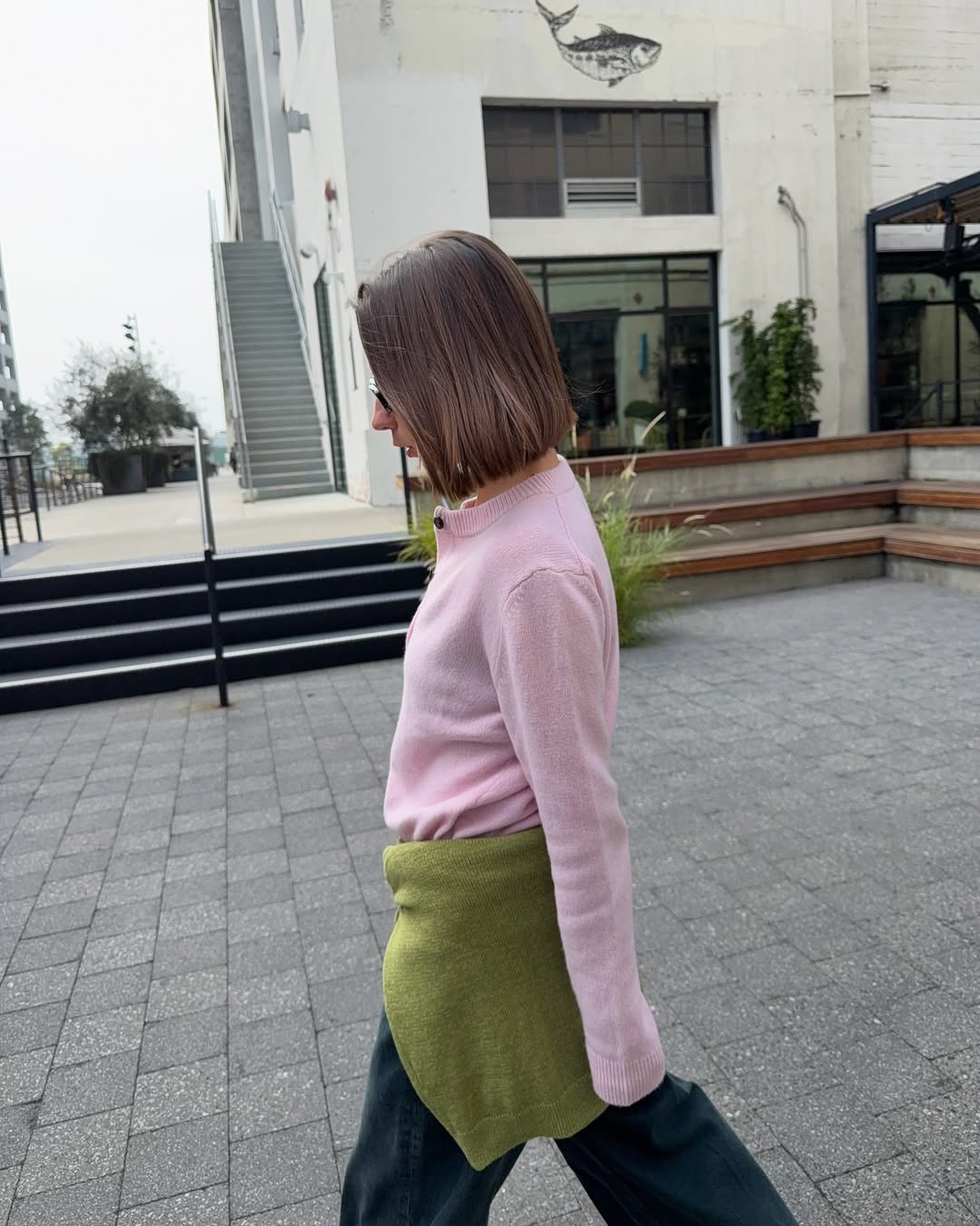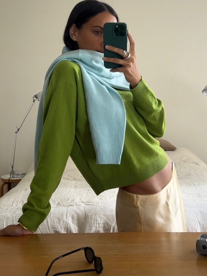무엇보다 니트 레이어드의 핵심은 색을 겹쳐 입는 재미에 있어요. 예를 들어 러블리한 핑크색 니트 위에 강렬한 레드 니트를 겹쳐 입으면 사랑스러움에 대담하고 에너제틱한 무드가 살아나죠. 반대로 차분한 그린 컬러 니트에 에메랄드 블루 톤의 니트를 매치하면 부드러우면서도 따뜻한 분위기가 완성돼요.