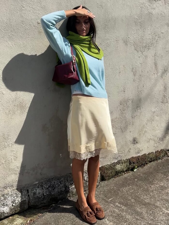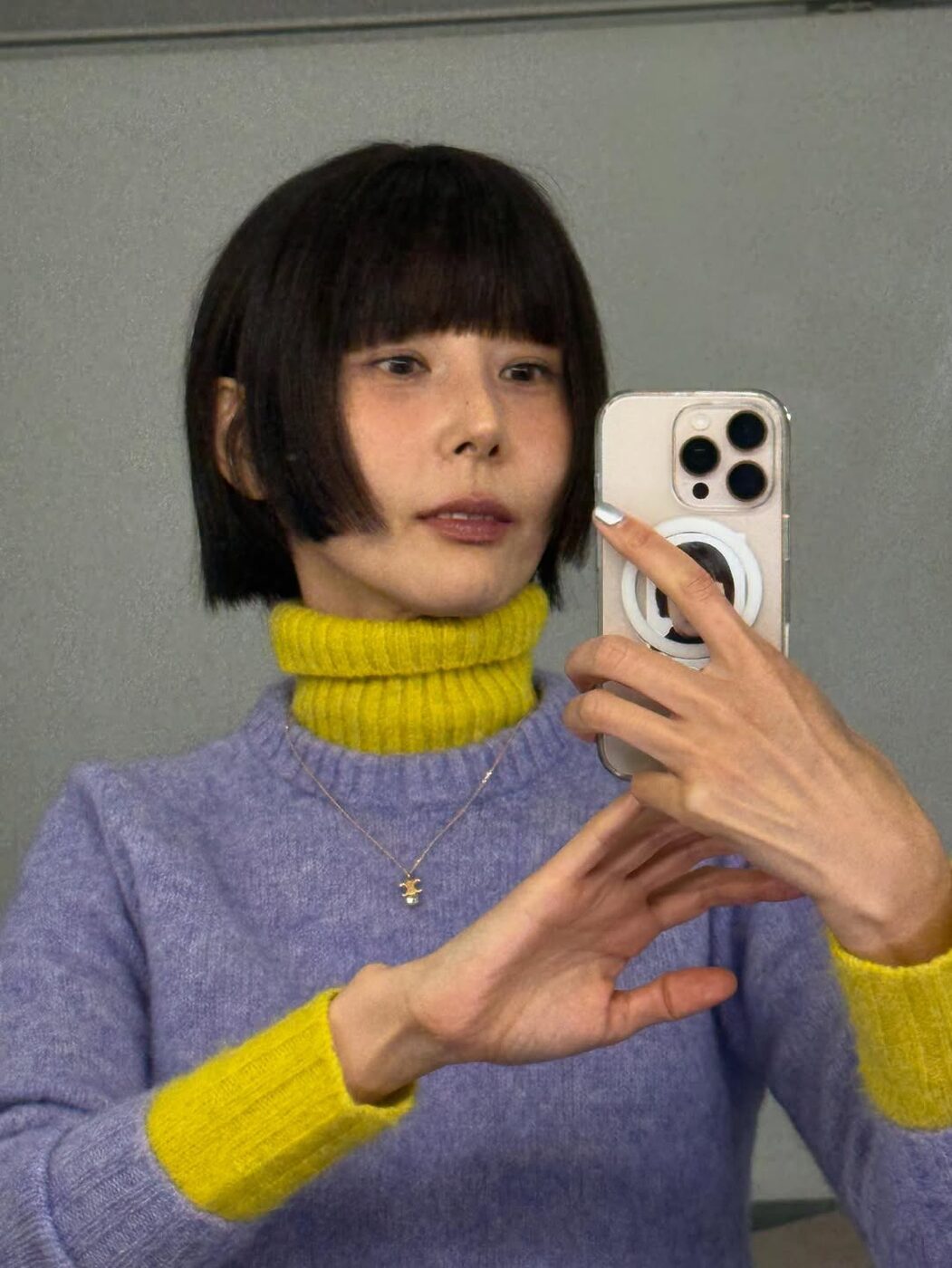 그래서 요즘 옷잘알들은 니트를 하나만 입지 않고 레이어드를 통해 보온과 스타일, 두 가지를 동시에 잡습니다. 노란색 터틀넥에 바이올렛 컬러의 크루넥 니트를 입거나, 레드 니트 위에 진한 퍼플 가디건을 레이어링하는 것처럼 말이죠.