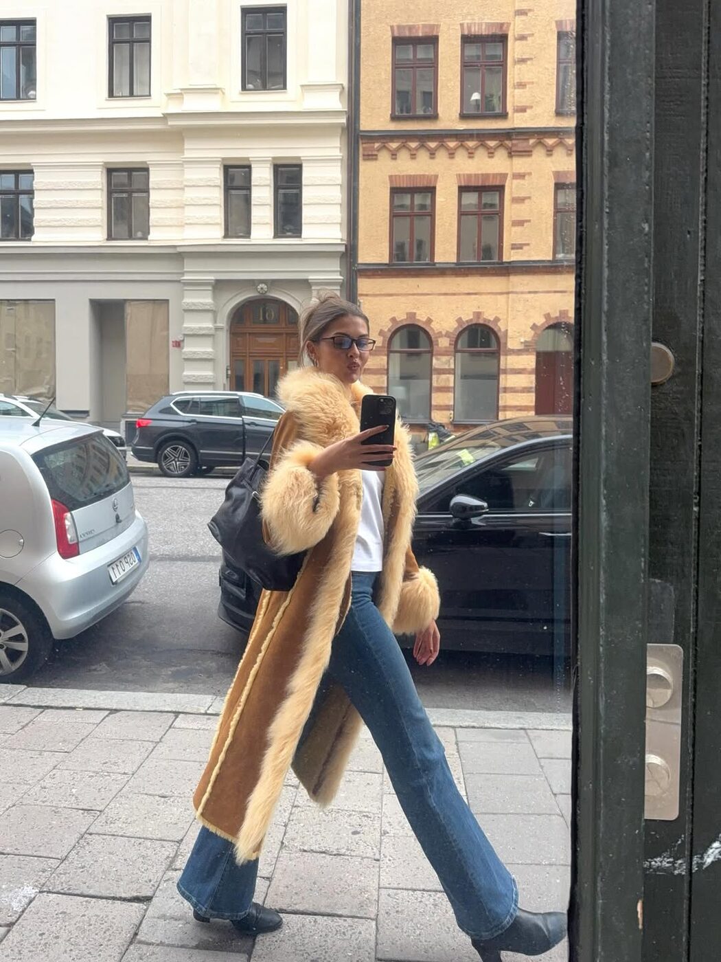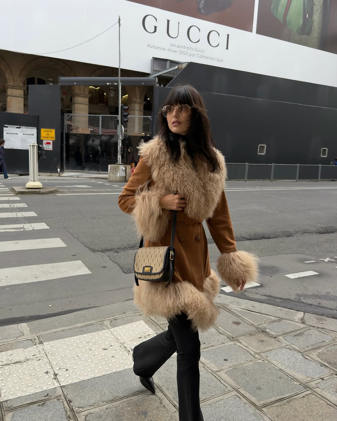 퍼 코트보다 퍼 트리밍 아우터가 매력적인 이유? 부담스럽지 않게, 그러나 확실한 존재감을 드러낼 수 있기 때문이죠. 무겁지 않으면서도 따뜻함과 스타일을 동시에 챙길 수 있습니다. 블랙 퍼 트리밍 아우터에 모던한 와이드 팬츠 그리고 스니커즈를 더하면 편안하면서도 포근한 데일리 윈터 룩이 완성됩니다.
