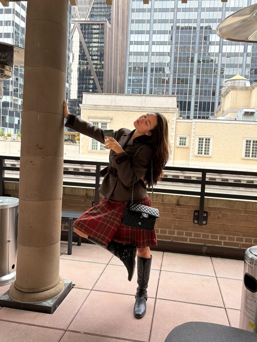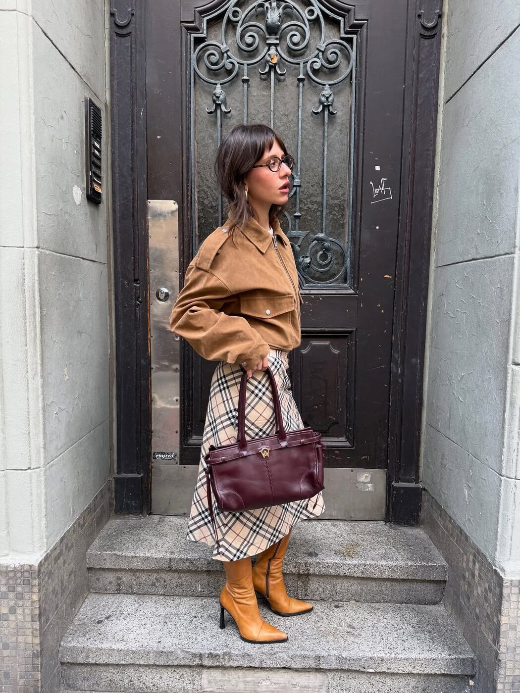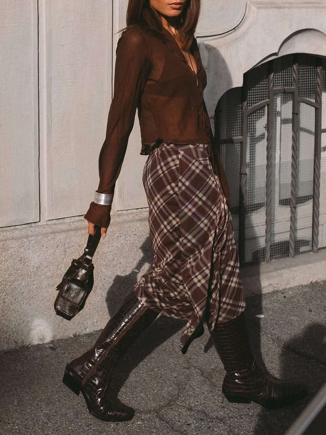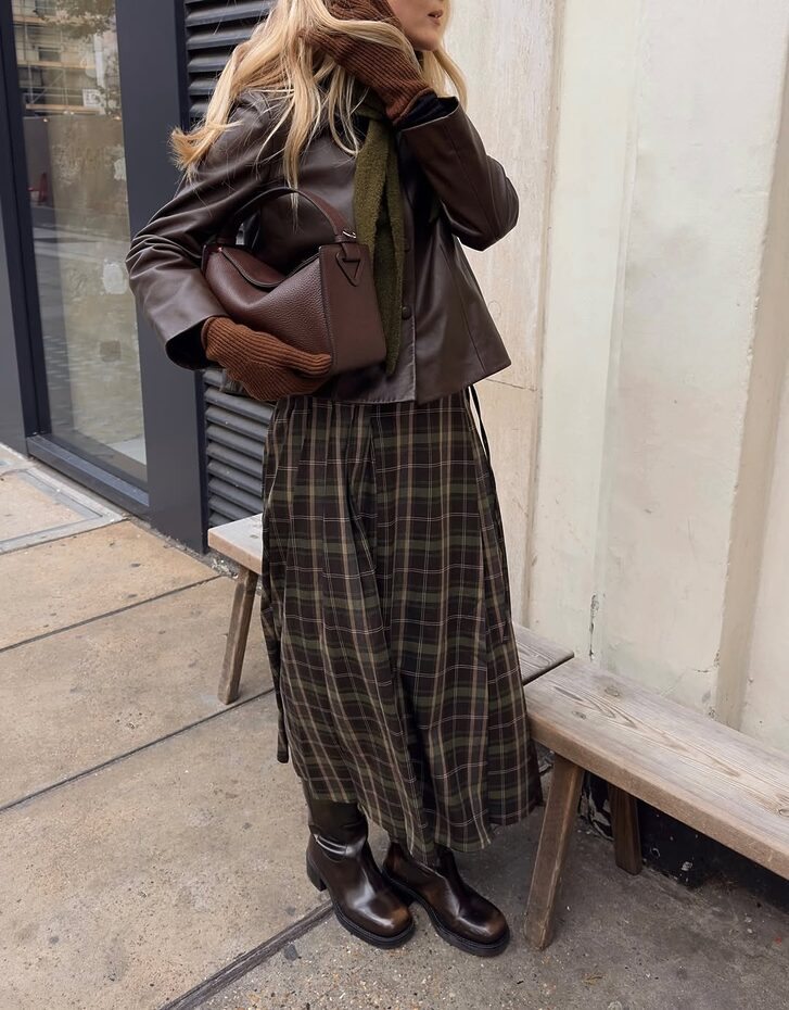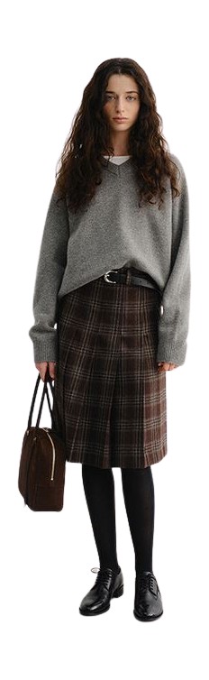 다리가 드러나는 미니 또는 니렝스 체크 스커트를 입을 땐 슈즈가 무척 중요합니다. 자유분방한 에너지의 펑크 룩을 완성하고 싶다면 시크한 무드의 워커 부츠나 레이스업 부츠를, 단정하면서 귀여운 프레피 룩을 연출하고 싶다면 클래식한 로퍼나 롱부츠를 신으세요. 강조하고 싶은 이미지에 따라 스커트의 실루엣, 디테일로 한 끗 차이를 더하는 것 역시 현명한 방법입니다.