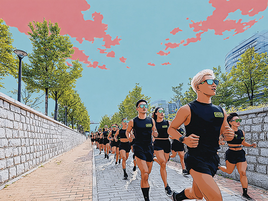 서울은 전 세계에서 트렌드에 가장 빠르게 적응하는 도시다. 일도 유흥도 놓치지 않으려는 한국적 근면함 덕분에, 이곳은 모닝 커뮤니티라는 새로운 문화를 실험하기에 더없이 유리한 장이 된다. 다만, 한국의 모닝 커뮤니티에는 여전히 ‘수입품’의 기운이 묻어난다. 스몰토크 문화가 희박하고, 다수 속에서 이질감보다 동조를 택하는 정서상 낯선 사람들과 아침을 공유한다는 건 여전히 약간의 어색함을 동반한다. “물론 한국 사람이 먼저 다가가 낯선 이와 쉽게 어울리는 편은 아니에요. 하지만 일단 판이 깔리면 누구보다 적극적으로 즐기는 성향이 있죠. 그래서 플랫폼이나 포맷만 제공되면 금세 몰입하고, 그 안에서 자신을 표현하는 데 주저하지 않아요. 게다가 아침 모임은 내향인에게도 최적이에요. 대개 오전 7~8시에 시작해 1시간 남짓 진행되기 때문에 ‘저 이제 출근해야 해서요’라는 완벽한 핑계를 대며 자연스럽게 빠져나올 수 있죠. 사실상 내향인을 위한 커뮤니티 매뉴얼이 이미 내장된 셈이에요.” 박재현 대표의 말이다. 이처럼 서울의 모닝 커뮤니티는 한국적 정서 위에 세워졌지만, 그 밑바탕에는 세계 곳곳에서 동시에 일어나는 변화의 흐름도 깔려 있다. 김록 디렉터는 그 점을 이렇게 짚는다. “한국뿐 아니라 전 세계적으로 불고 있는 피트니스 신 열풍이 지금의 아침 문화를 견인했죠. 혼자 하던 운동에서 그룹 운동으로 수요가 옮겨갔고, 공급자 입장에서도 과도한 출혈 경쟁 속에 그룹 운동에 집중하게 된 거죠. 특히 젊은 층에서는 ‘함께한다’는 감각이 중요해졌고, 러닝 크루 문화도 이런 흐름의 연장선에 있어요. 이런 맥락에서 러닝은 지금 모닝 커뮤니티를 지탱하는 핵심적 요소인 셈이죠.”