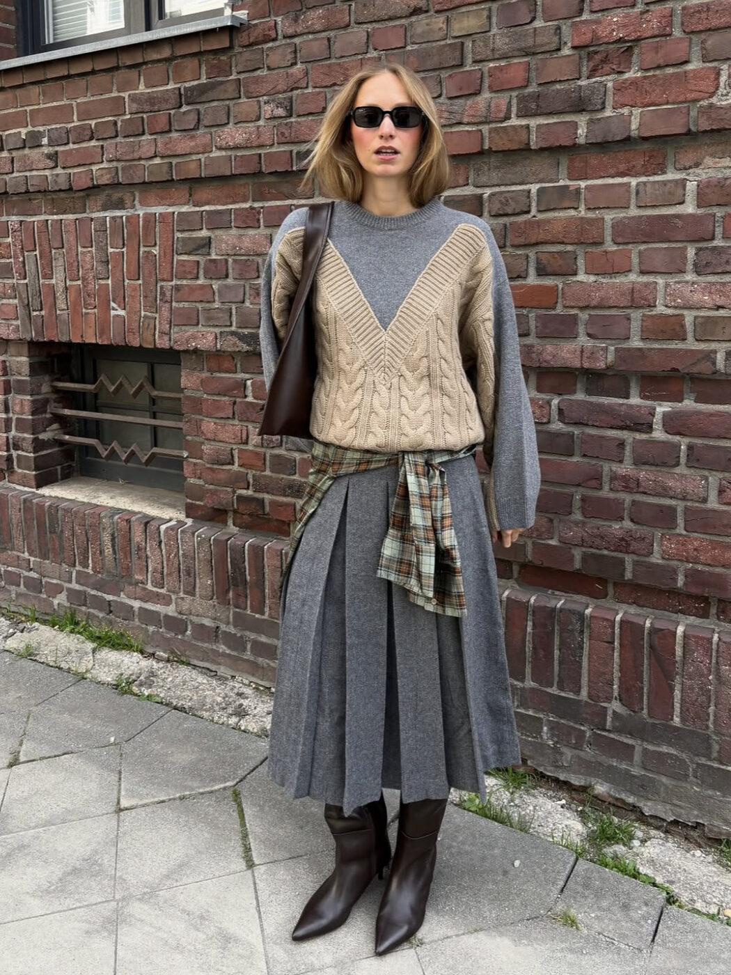 이번 겨울 이 플리츠 스커트를 더 트렌드하게 입고 싶다면 로우 힐의 앞 코가 뾰족한 포인티드 부츠를 신어주세요. 블랙 혹은 브라운, 모두 다 어울립니다. 여기엔 도톰한 스웨터 하나 걸치면 큰 고민 없이 클래식하면서도 스타일리시한 룩이 완성됩니다.