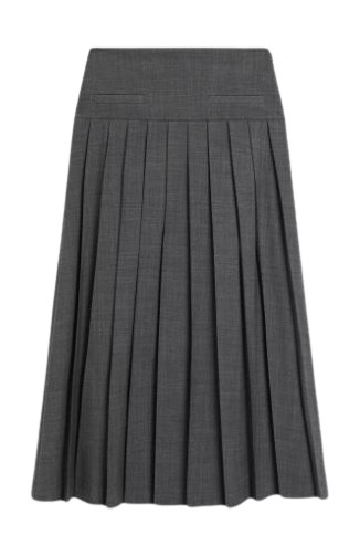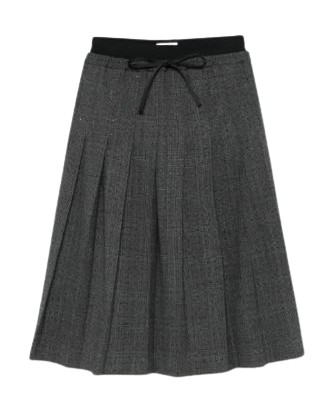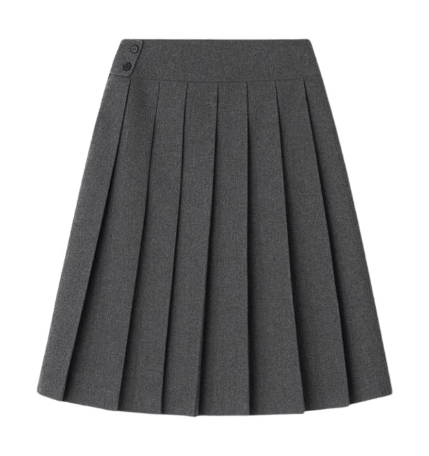 클래식 아이템으로 자리잡은 그레이 플리츠 스커트.
