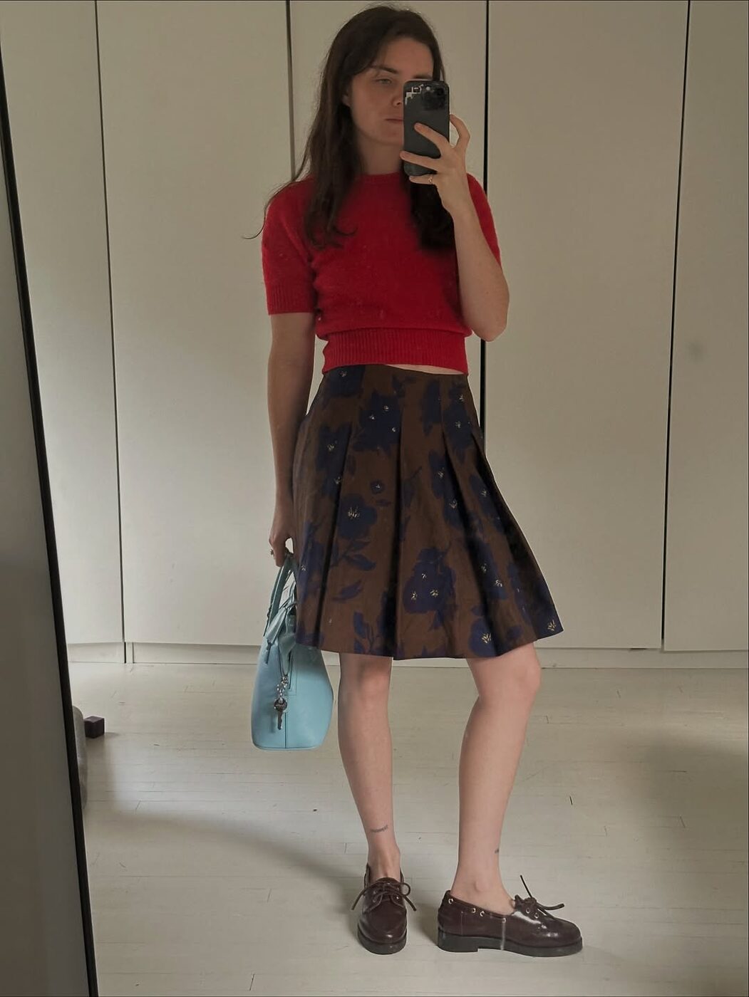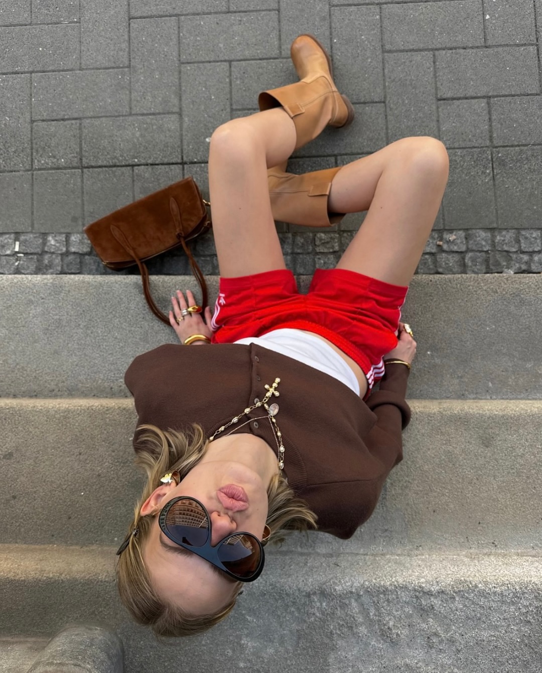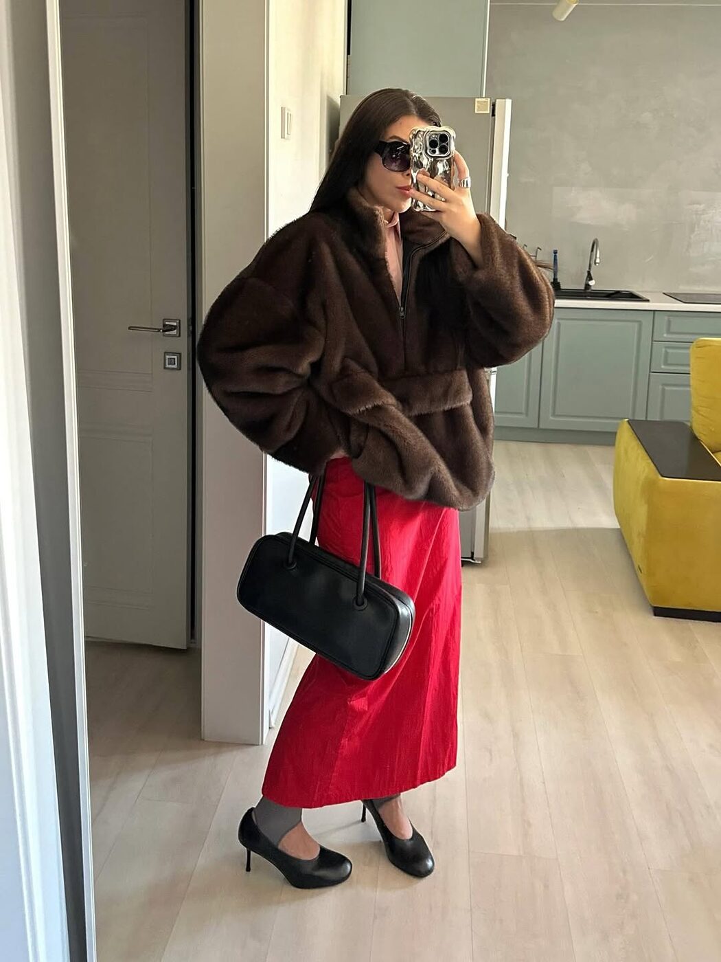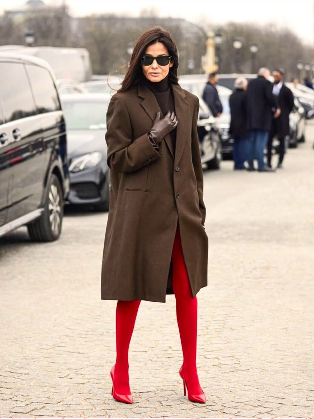 이제 다음 단계로 가볼까요? 레드의 비중을 조금 더 높여 상의나 하의로 과감하게 입어보세요. 레드 팬츠에 브라운 재킷을 매치하거나, 반대로 브라운 스커트에 레드 니트를 더하는 식으로 연출하면 스타일리시하면서도 세련된 분위기를 연출할 수 있어요. 이때 한 가지 색을 메인으로 두고 다른 색을 서브로 활용하면 균형감 있는 룩을 완성해보세요.