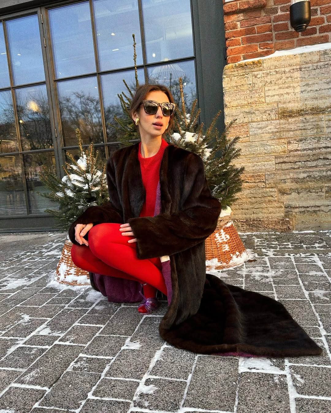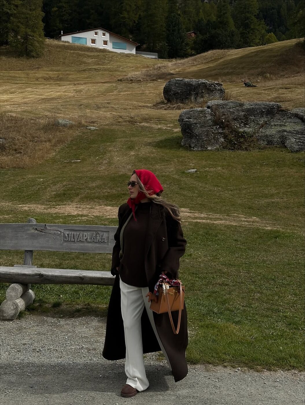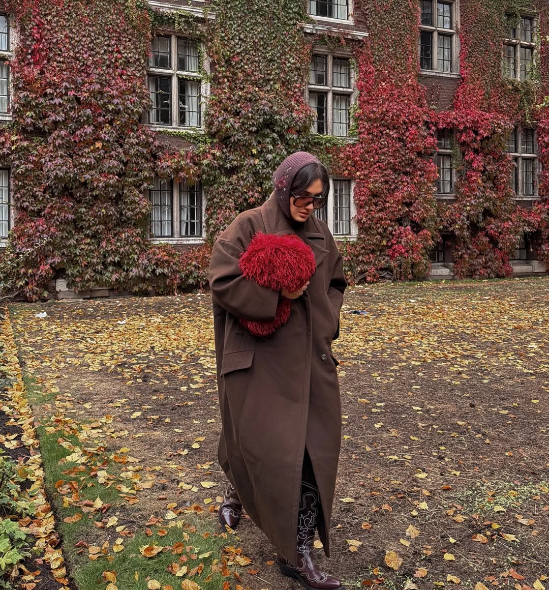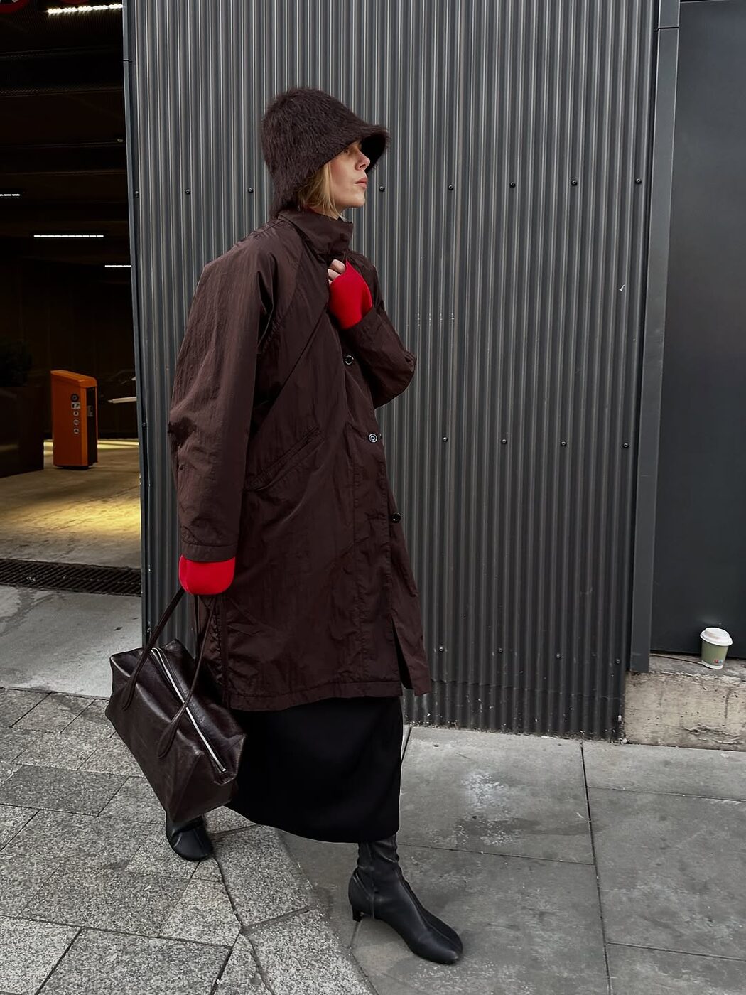 브라운과 레드는 서로를 돋보이게 하면서도 자연스럽게 어우러지는 최고의 궁합이에요. 강렬한 레드가 부담스럽다면 액세서리부터 시작해보세요. 브라운 코트에 레드 양말이나 스타킹을 매치하거나, 가방이나 모자 하나만 더해도 감초 역할을 톡톡히 해줍니다. 조금 더 과감하게 연출하고 싶다면 코트 안에 레드 니트를 입어 살짝 보이게 스타일링하는 것도 좋은 방법이에요. 소소한 포인트만으로도 단조로운 겨울 스타일링에 생동감을 더할 수 있어요.