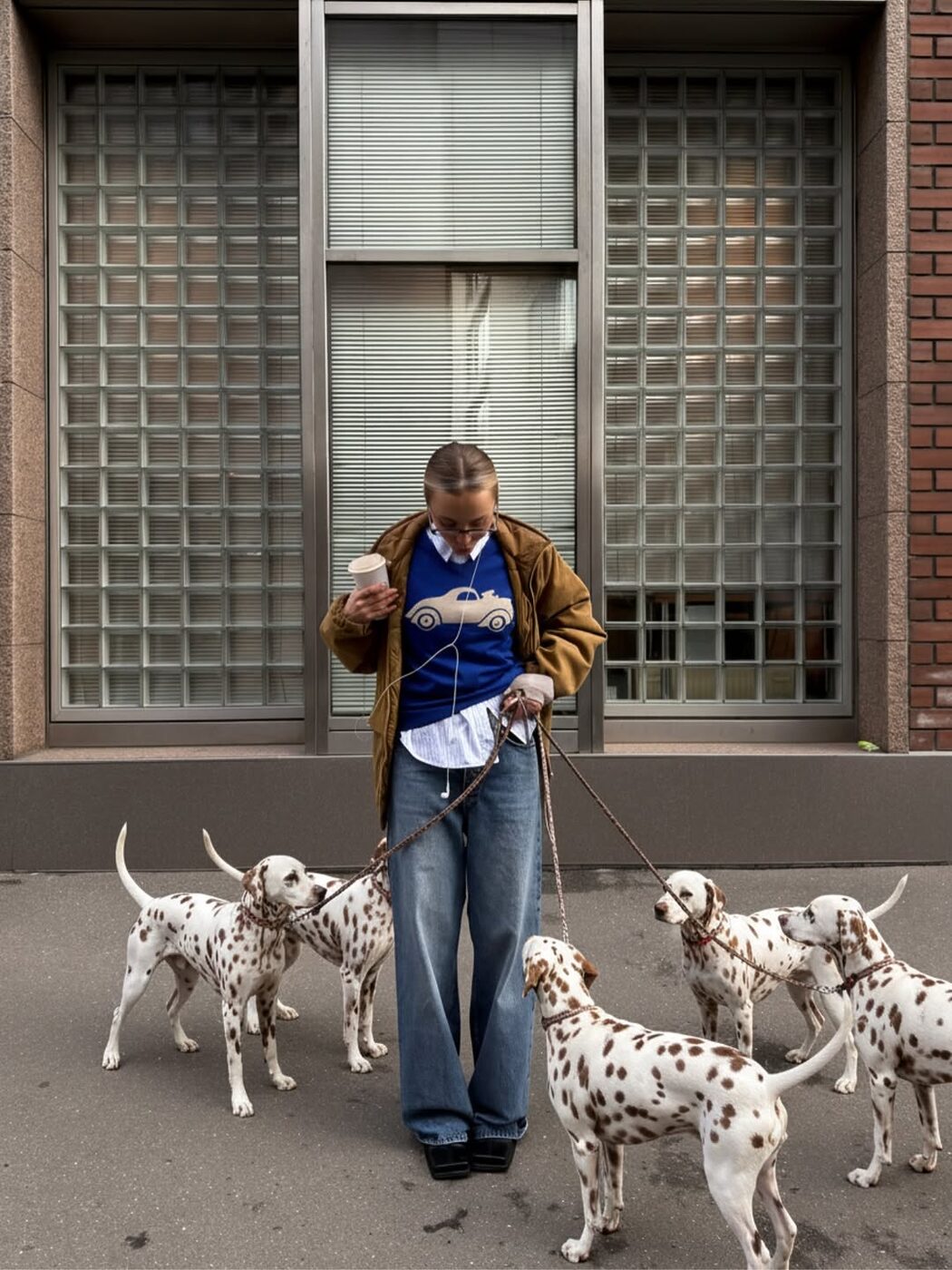 패션 인플루언서 이네스는 강아지 일러스트가 그려진 네이비 니트 카디건으로 시선을 사로잡았습니다. 짧은 크롭 실루엣 덕분에 귀엽고 키치한 무드가 한층 강조됐죠. 여기에 데님 스커트와 빨간 스카프를 허리에 둘러 발랄한 포인트를 더했네요.