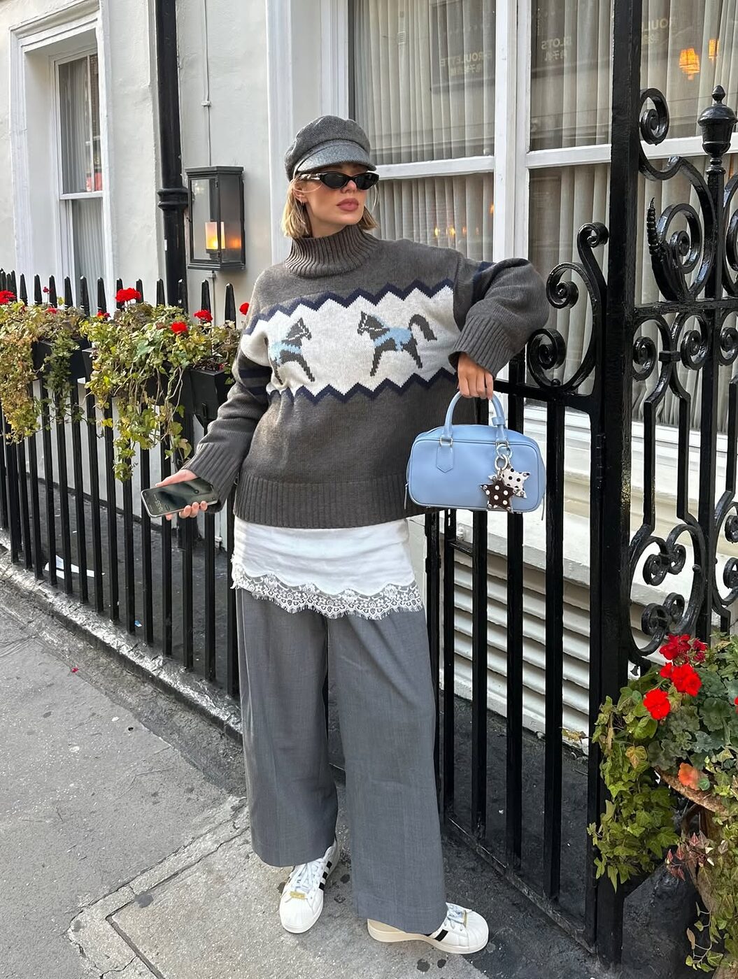 올 한 해의 메가 트렌드였던 슬립 드레스를 어글리 니트와 함께 활용해 봐도 좋겠습니다. 넉넉한 핏의 그레이 하이넥 스웨터에 슬립 드레스를 레이어드하고, 슬랙스와 뉴스보이 캡을 더해 그레이 톤 룩으로 연출한 인플루언서 린다. 포근하면서도 페미닌함이 느껴지는 레이어링으로 단조롭지 않은 그레이 스타일링을 보여줬어요.