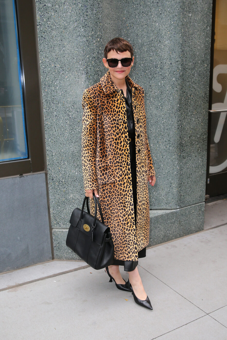 ‘굿모닝 아메리카’ TV쇼에 출연한 기니퍼 굿윈. 회색 슈트 셋업에 아무 장식 없는 클래식한 블랙 코트를 더했습니다. 여기에 큼지막한 멀버리의 토트백까지! 겨울 출근룩의 정석이라고 할 수 있는 조합이죠.