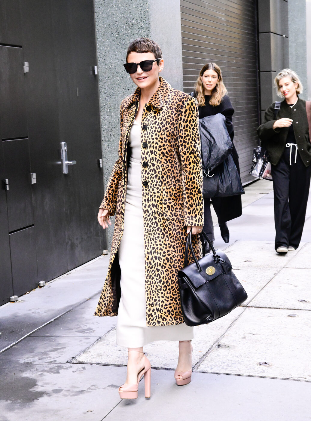며칠 전엔 같은 날 한 코트로 두 가지 룩을 보여줬습니다. 레오파드 패턴의 코트에 이너만 화이트에서 블랙으로 바꾸었는데요. 화이트 원피스를 입었을 땐 슈즈까지 누디한 핑크색으로 맞춰 좀 더 부드러운 인상을 줬고, 블랙 이너를 입었을 땐 카리스마가 넘치죠. 클래식한 아이템으로 다양하게 연출하는 것이 기니퍼 굿윈의 스타일링 기법입니다.