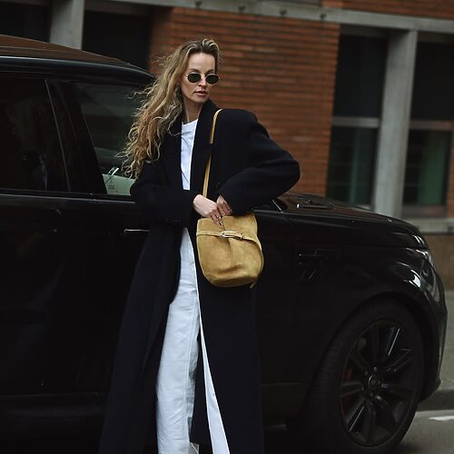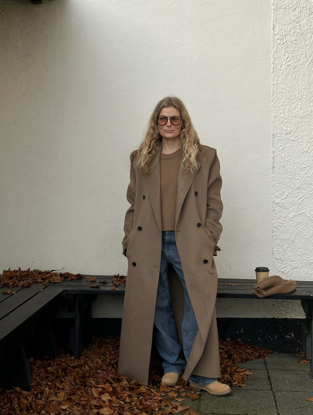 이 카멜 컬러의 롱 코트 또한 미덕은 길이에서 시작됩니다. 전신을 훌쩍 커버하는 기장이라 안에 뭘 입던간에 깔끔하게 정리해주는 효과도 있습니다. 코트를 주인공으로 내세우고 싶다면, 같은 톤의 니트나 이너, 미지근한 데님을 매치해보세요.