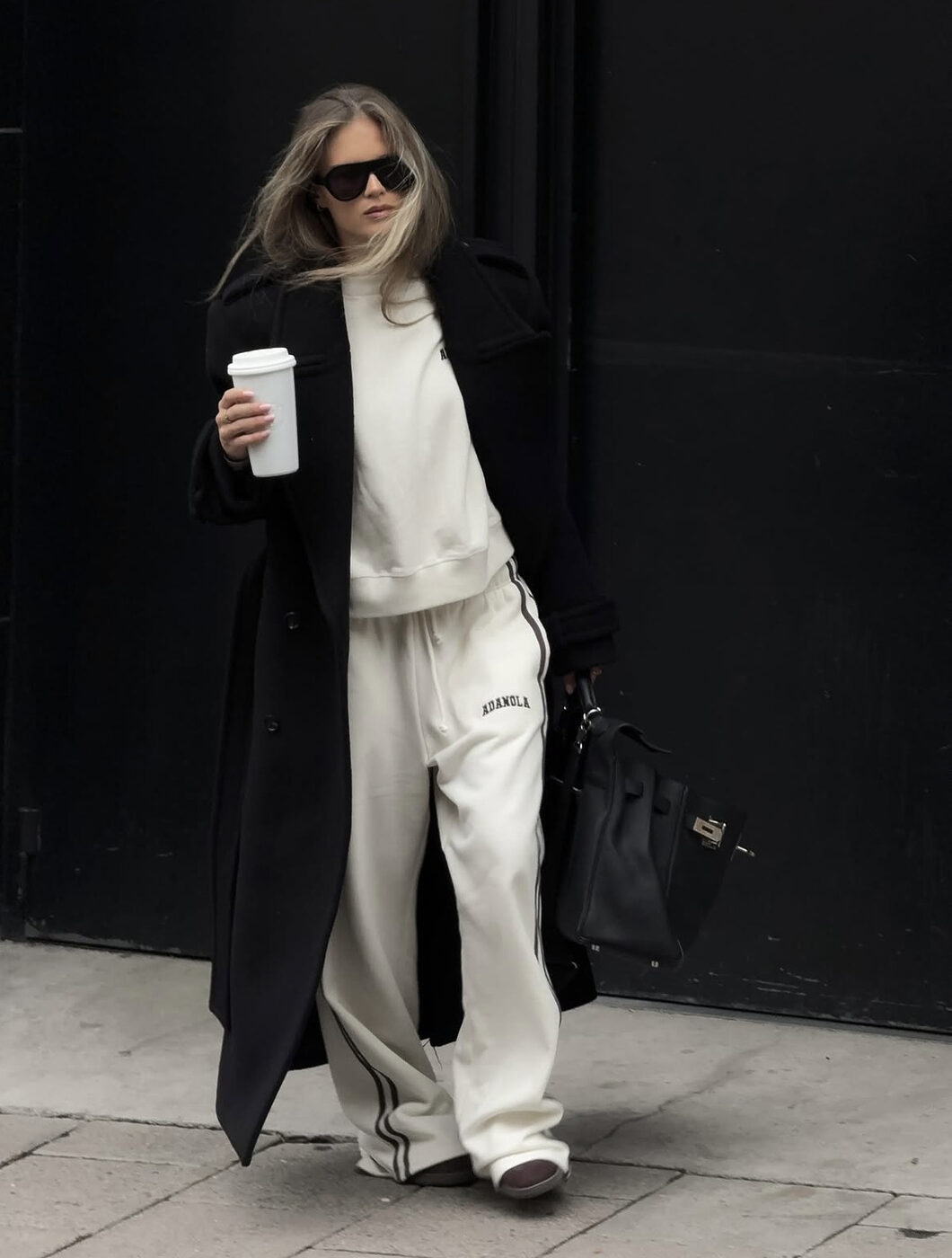 코트의 기장이 길수록 비례하는 것이 있습니다. 바닥에 닿을 듯한 길이만큼 ‘품격’이 배가되는 것인데요. 안에 입은 옷차림은 스웨트셔츠와 스웨트 팬츠 그야말로 집에서 바로 나온 듯한 룩이지만, 코트 하나로 모든 것을 마무리하죠. 이지웨어가 가진 편안함은 그대로 살리고, 한껏 오픈한 가죽 가방, 선글라스를 더해 세련되고 우아하게 마침표를 찍어보세요. 힘을 뺀 오마일룩이지만, 전체를 보면 차분하고 트렌디한 조합일 거예요.