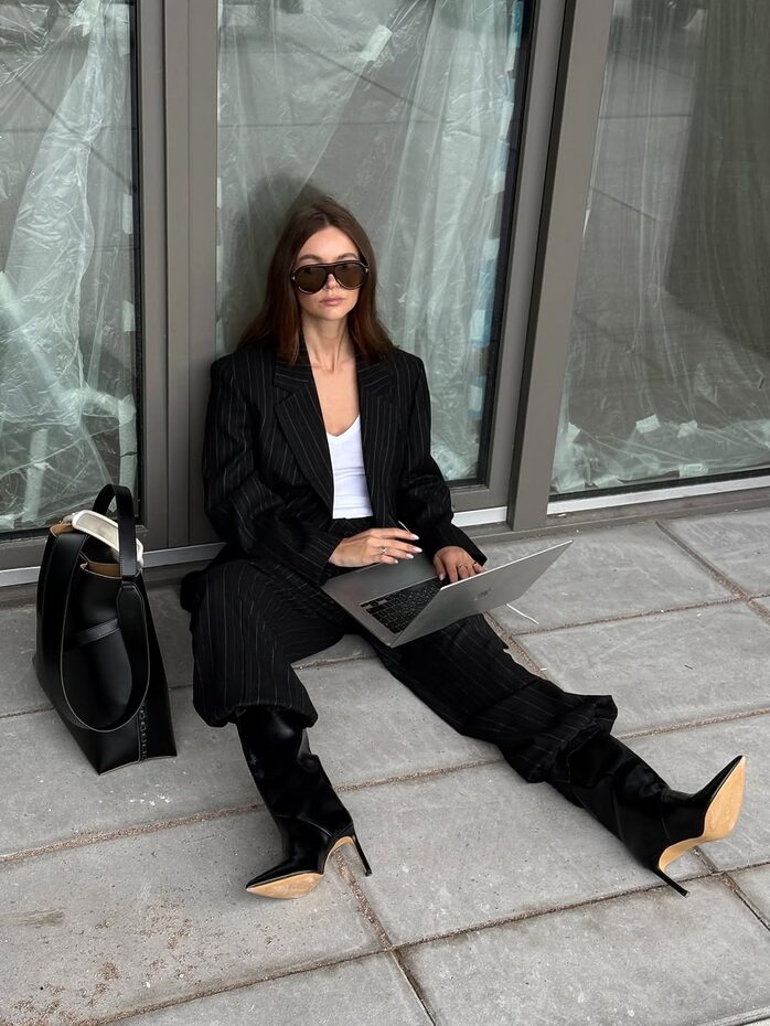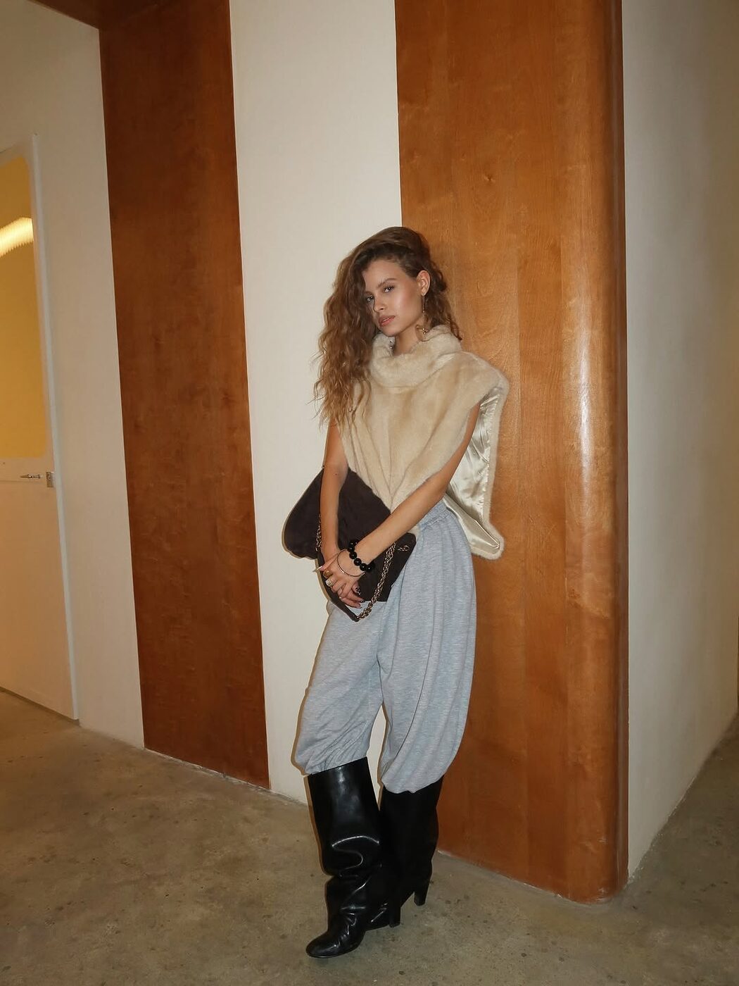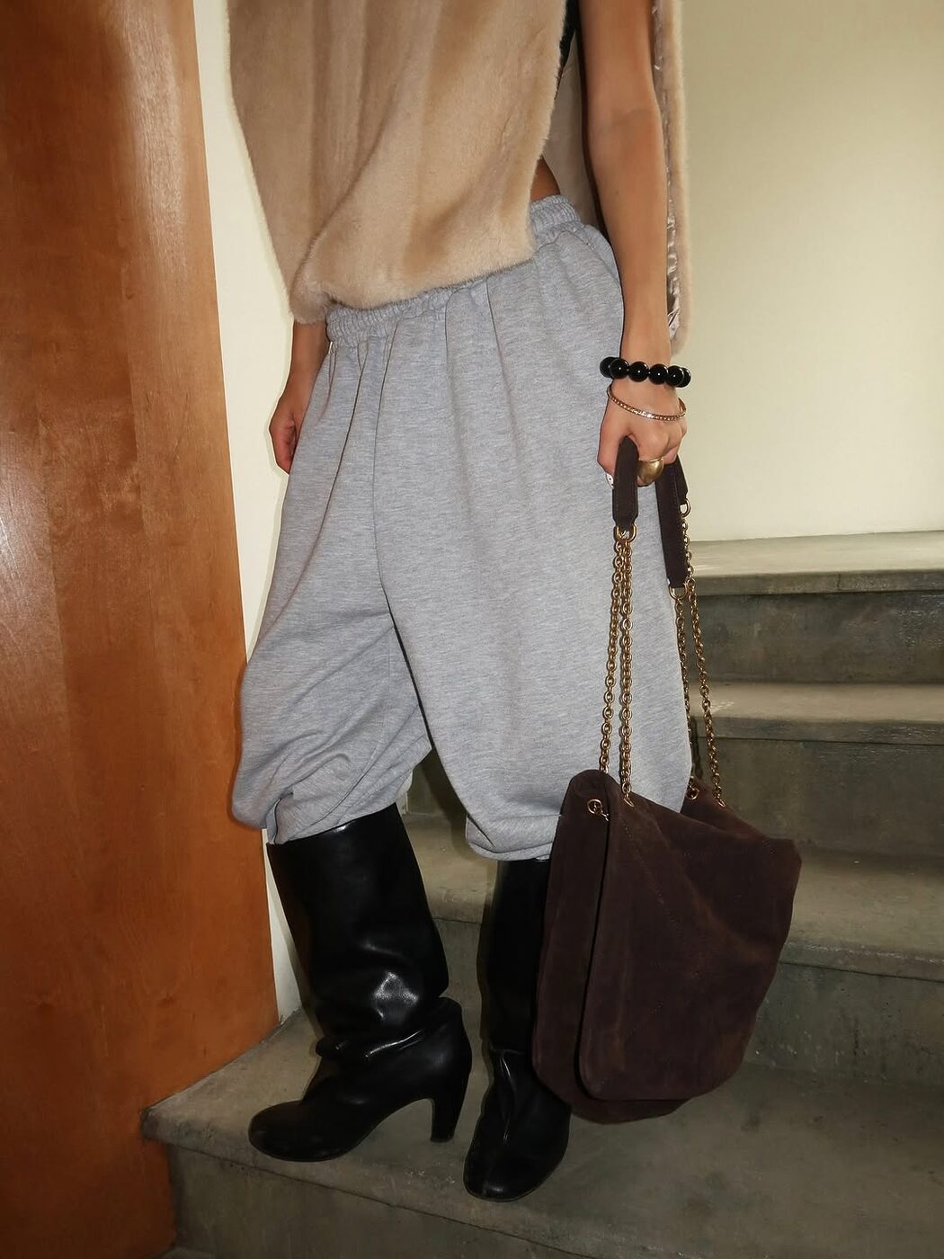 와이드 부츠, 슬라우치 부츠 등 한층 더 폭이 넓고 헐렁한 롱부츠는 자연스럽게 스타일리시한 무드를 자아냅니다. 여기에 쿨한 느낌을 더하려면 마찬가지로 큼지막한 오버사이즈 팬츠를 부츠에 넣어 의도하지 않은 듯 시크한 멋을 강조하세요. 룩 전체가 새롭게 느껴지는 것은 물론 평소 통통한 하체가 고민인 이들에게는 다리가 날씬해 보이는 효과까지 선사한답니다.
