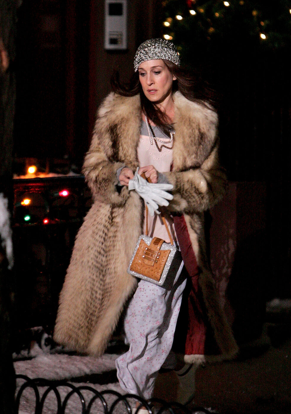 시리즈가 거듭할수록 건재했던 이 퍼 코트는 2007년 다시 드라마 속에 나오게 됩니다. 연말을 아쉬워하며 잠옷을 입고 잘 준비를 하던 캐리 브래드쇼가 갑자기 외출을 하는 장면에서 우리는 이 화려하고 글래머러스한 코트의 진가를 확인하게 되죠. 꽃무늬 파자마 팬츠와 캐미솔 톱, 그 위에 퍼 코트를 걸치고 화려한 모자와 백, 앵클 부츠를 신은 그녀가 마지막으로 걸친 진주 목걸이까지. 무엇을 입든 이 럭셔리한 무드의 코트만 있다면 연말은 걱정 없을 것 같네요.