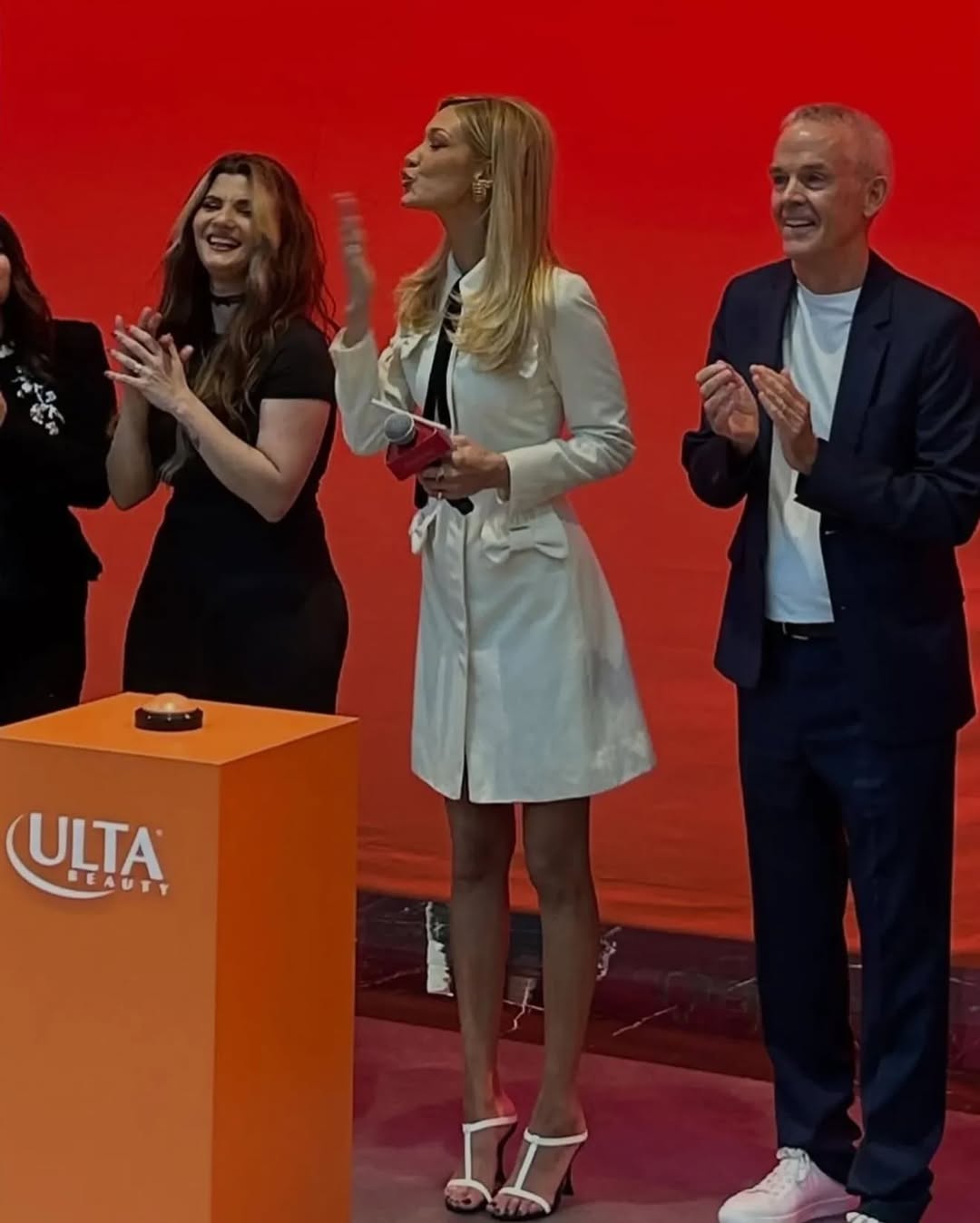 이렇듯 그녀가 자신만의 비즈니스 룩 아카이빙을 만들어가는 데에 8할은 빈티지 슈트 피스가 차지합니다. 하지만 숨은 공신이 또 하나 있는데요. 바로 금발머리죠. 비즈니스 일정 내내 7대3 가르마에 볼륨과 웨이브가 더해진 머리로 깔끔하고 성숙한 분위기를 내는 그녀. 여기에 지방시의 1996년 가을 겨울 컬렉션 제품인 리본 코르사주와 타이 장식이 특징인 코트 드레스를 입어 바비 인형 같은 비주얼을 뽐냈습니다.