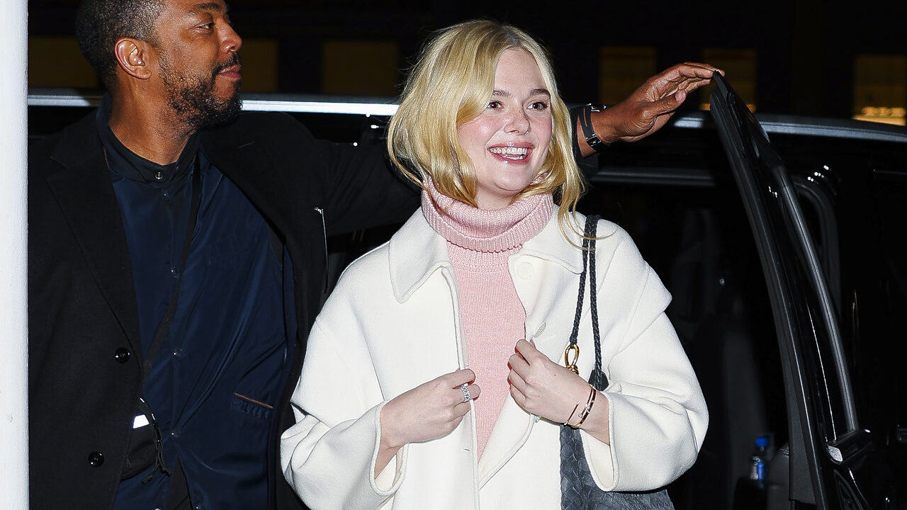 파스텔 핑크가 이렇게 우아하면서도 러블리할 수 있다니! 새하얀 코트에 분홍색 니트 톱과 팬츠를 매치해 로맨틱한 무드를 완성한 엘르 패닝. 여기에 구두까지 핑크로 톤온톤으로 맞춰 전체 룩의 통일감을 살렸어요.