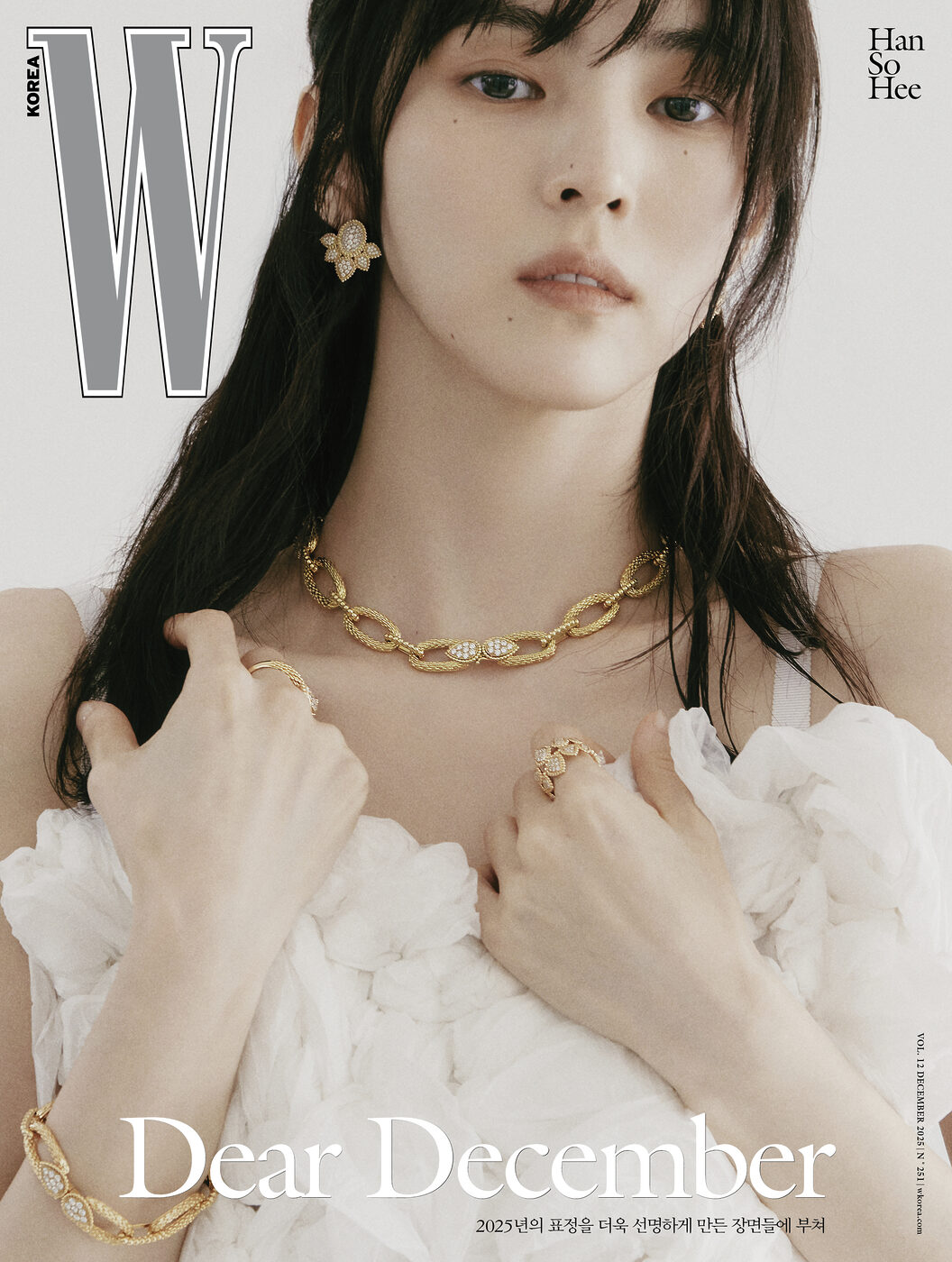 Dear December! 한 해의 끝자락에 섰음을 알려주는 소식, 지금 <더블유> Vol.12가 도착했습니다. 차가운 계절의 한가운데, 배우 한소희가 고요하지만 찬란한 얼굴로 우리 앞에 섰습니다.