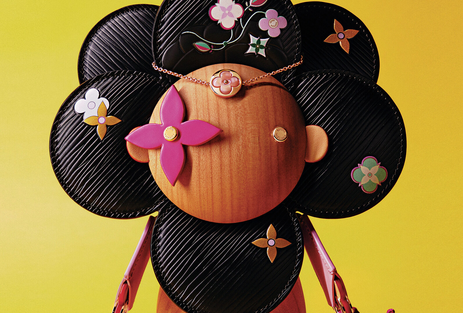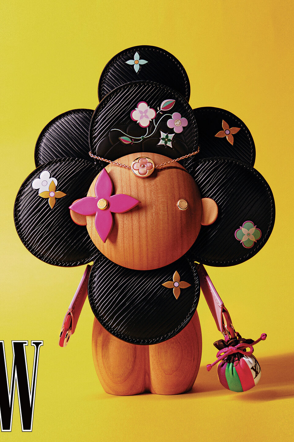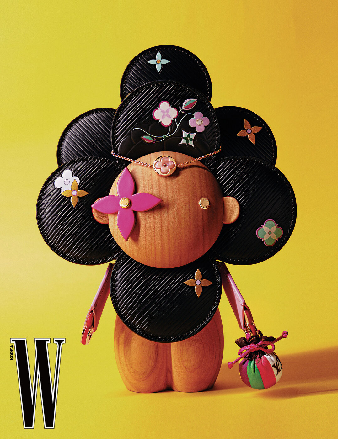 가채를 쓴 사랑스러운 비비엔 인 서울 피규어, 핑크 골드에 핑크 자개를 세팅한 컬러 블라썸 M 썬 브레이슬릿은 루이 비통 제품.