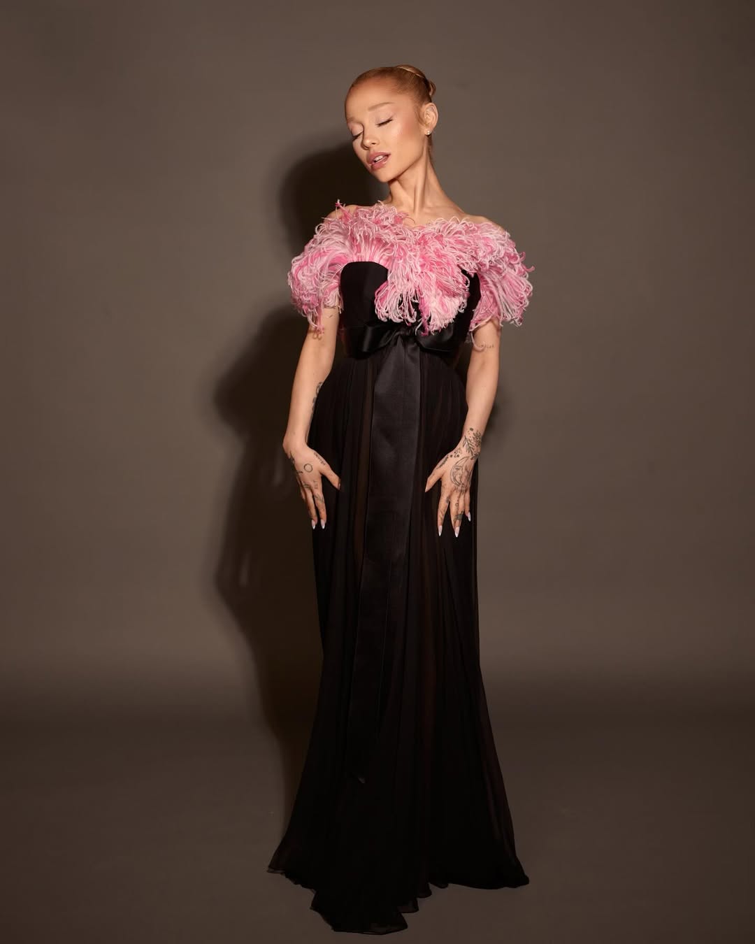 아리아나 그란데는 꾸준히 빈티지 피스들을 소환하며 그때 그 시절의 클래식한 룩들을 재발견하고 있습니다. 1959년 이브 생로랑이 디올에 몸담았던 시절 탄생한 살구빛 새틴 드레스부터 섬세한 튤 레이어링이 돋보이는 1992년 샤넬의 핑크 드레스, 폭죽이 터지는듯한 형상의 1991년 이브 생로랑 페더 장식 블랙 드레스까지 어느 것 하나 거를 타선이 없죠.