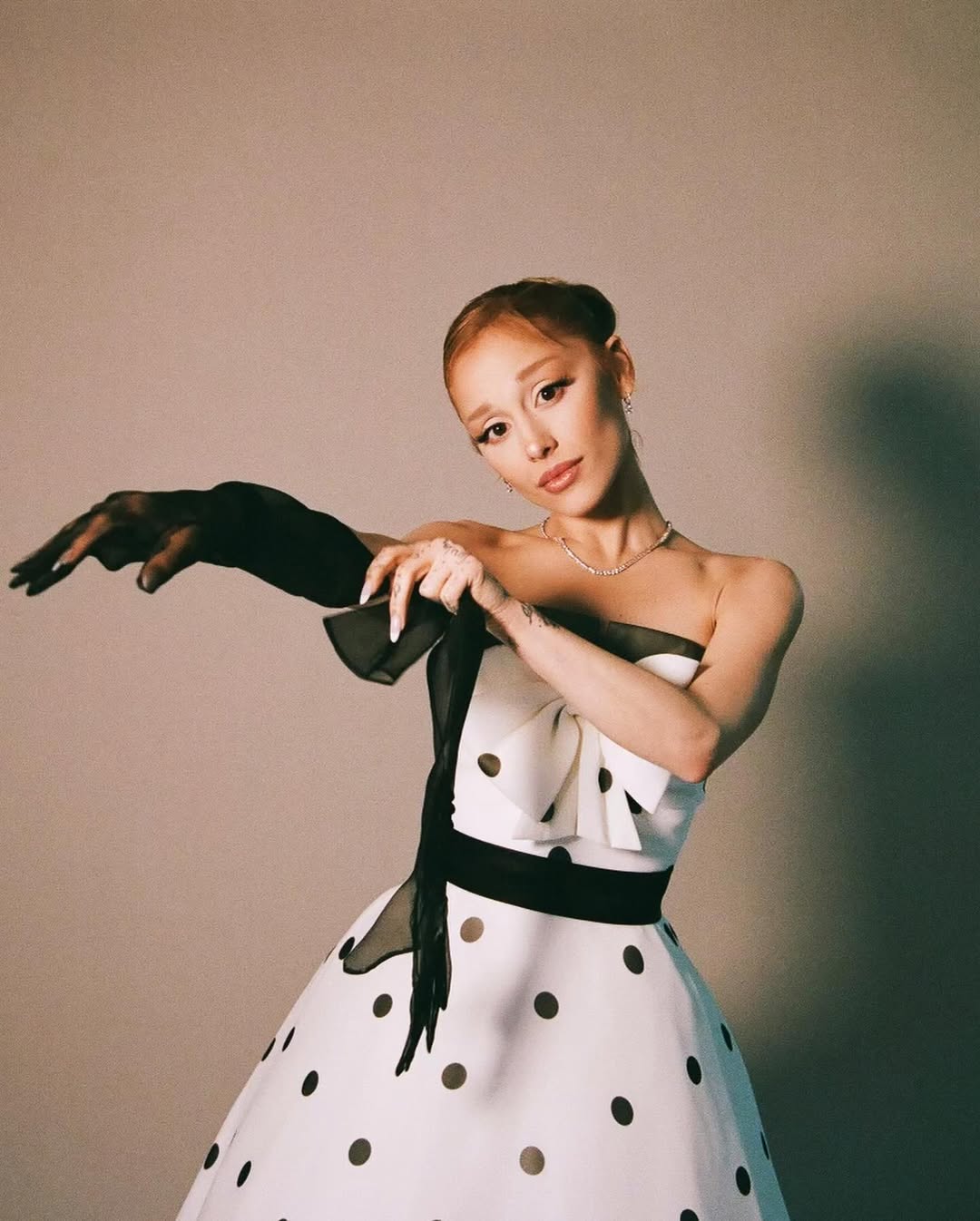 스타일리스트 미미 커트렐은 인스타그램에 아리아나가 입은 드레스 룩을 깨알같이 공유하며 열심히 빈티지 아카이브 피스들을 공수 중입니다. 사소한 의상 하나 허투루 넘기지 않는 그녀는 과거와 현재를 넘나들며 오로지 ‘글린다’를 위해 고군분투 중이죠. 특히 <위키드> 첫 개봉 당시 아리아나가 입었던 비비안 웨스트우드의 물방울무늬 드레스는 꽤 오랫동안 회자되었습니다. 이 역시 2010년에 만들어진 드레스였어요.