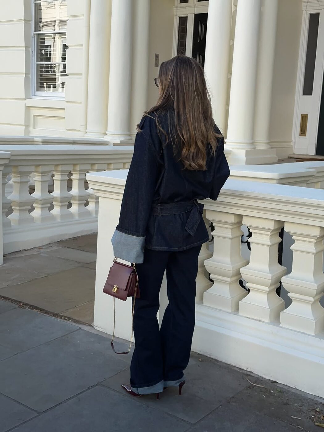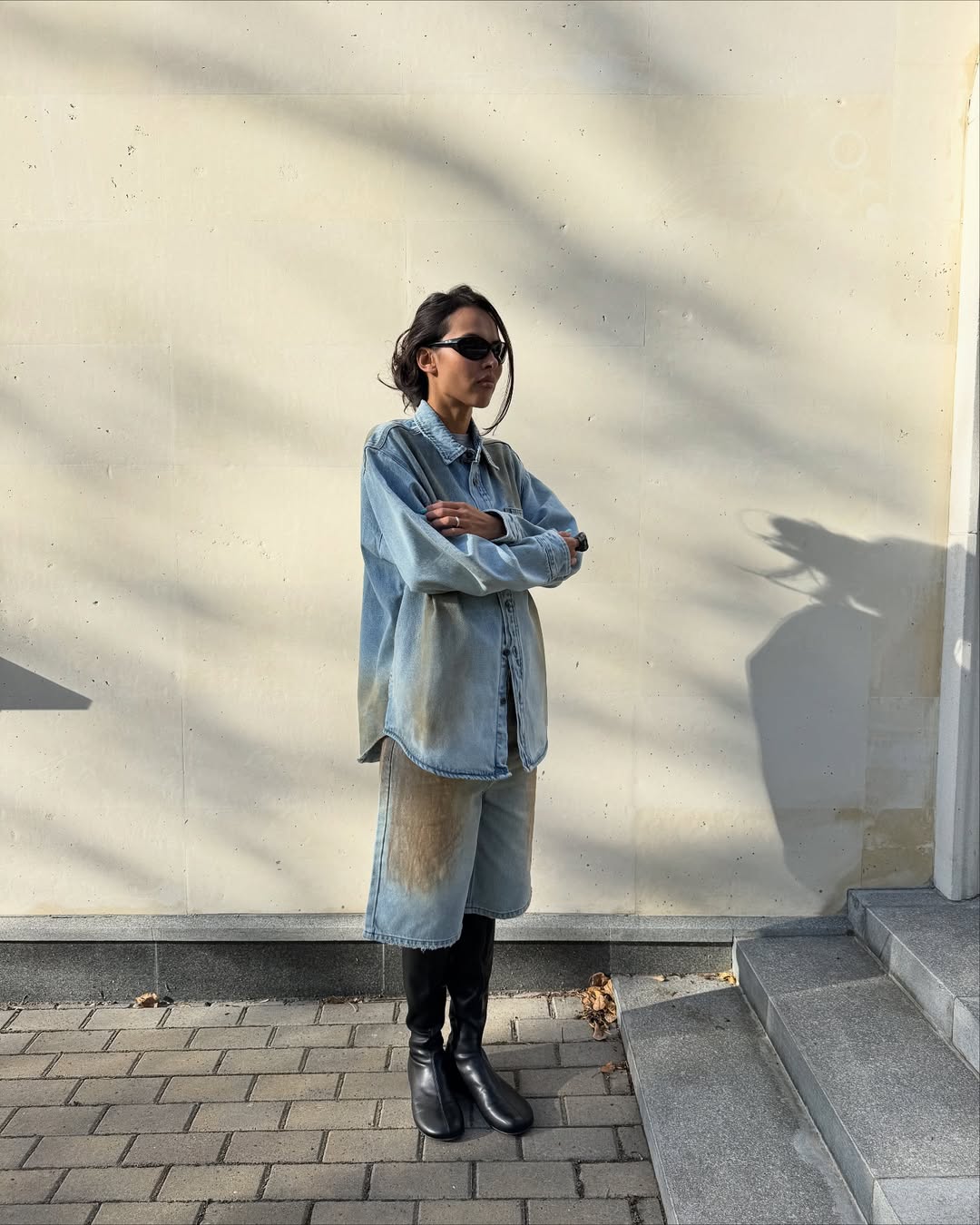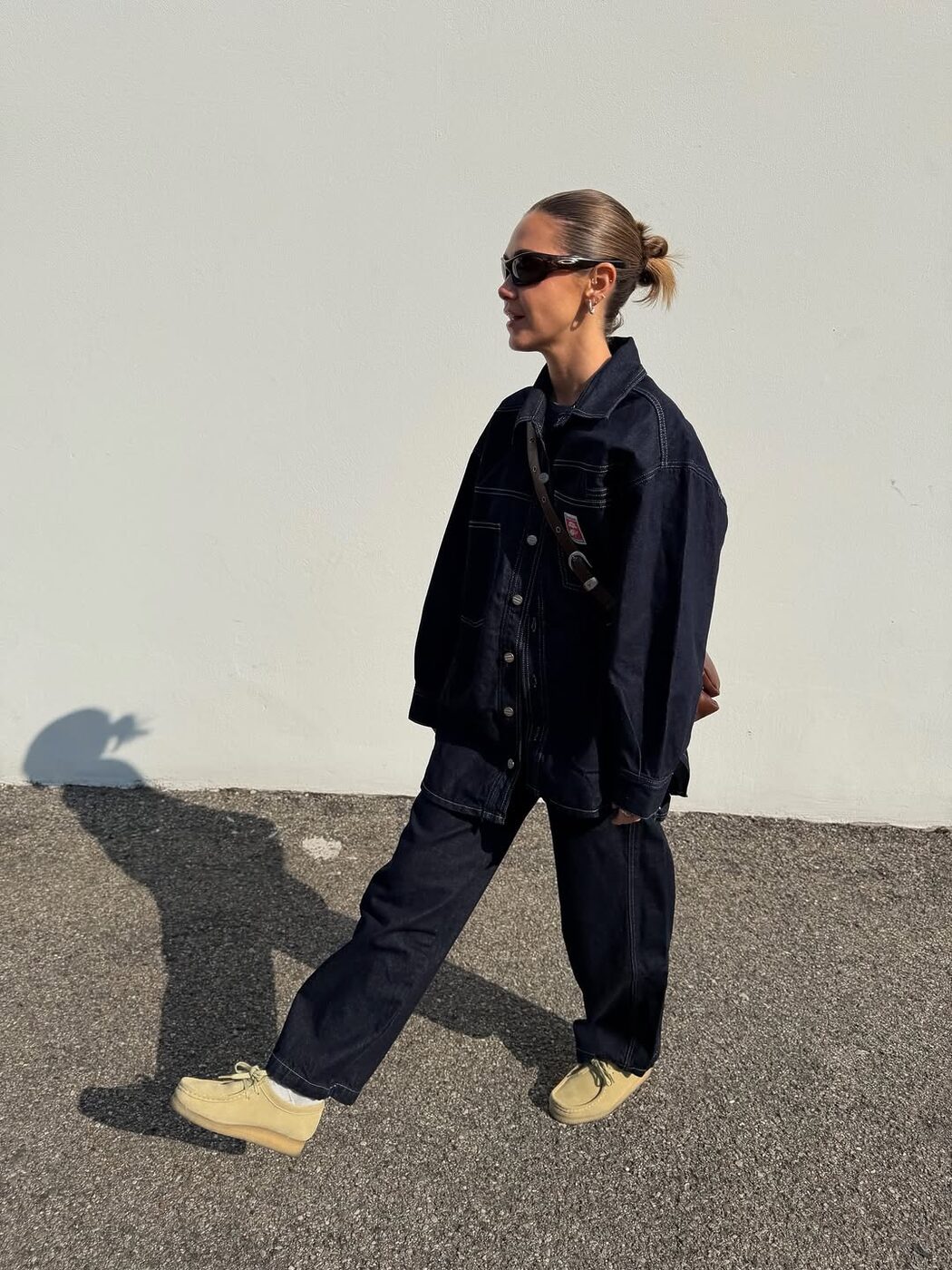 인디고, 생지 등 진한 색감을 띠는 데님 팬츠는 하나만 입어도 깔끔하면서 쿨한 무드를 자아내는 것이 특징입니다. 이러한 강점을 한껏 살리기 위해서는 유사한 톤의 데님 재킷을 걸쳐 셋업으로 차려입은 것 같은 룩을 연출하세요. 소재와 컬러가 선사하는 무게감을 통해 캐주얼과 포멀함, 그 중간 즈음의 분위기를 낼 수도 있고요. 소매 끝이나 팬츠 밑단을 접어 경쾌한 포인트를 더하는 것도 좋은 방법입니다.