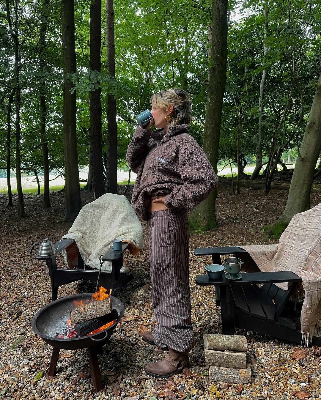 그래놀라 걸 하면 가장 먼저 떠오르는 핵심 아이템은 플리스, 코듀로이, 패딩 같은 기능성 소재의 아우터입니다. 커다란 플리스 재킷에 레깅스를 매치하거나 코듀로이 팬츠에 패딩 베스트를 매치하는 등 스타일링도 어렵지 않죠.