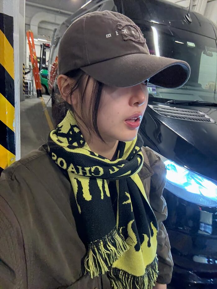 윤채의 스타일에서 언제나 진한 y2k 향기가 풍기는 건 바로 볼 캡 덕분인데요. 스트릿한 무드의 빳빳하고 강한 색감의 볼 캡 보단 유연하고 빛바랜 듯한 느낌의 빈티지 볼 캡을 선택하는 것이 포인트죠. 윤채처럼 부스스한 웨이브 헤어를 귀에 꽂지 않고 푹 눌러써 볼륨감 있는 실루엣을 연출한다면 더욱 그때 그 시절에 가까운 쿨한 바이브를 느낄 수 있습니다.