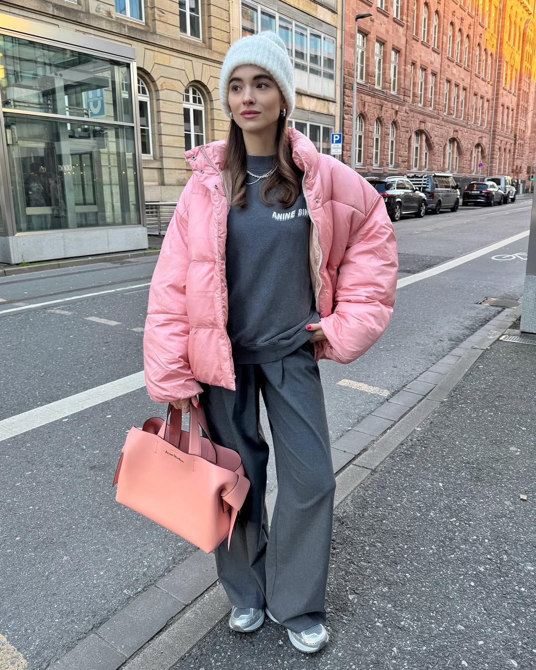 니트로 감을 익히고, 스커트로 무드를 살렸다면 이제 본격적으로 핑크를 즐길 차례예요. 바로 아우터로 넘어가는 거죠. 물론 니트나 스커트로 포인트를 주는 것도 충분히 매력적이지만, 겨울철 스타일링에서 가장 눈에 띄는 건 역시 아우터예요. 핑크 아우터 하나만 걸쳐도 무엇을 입었든 로맨틱하게 바뀌거든요. 패딩, 코트, 재킷 등 상관없으니 맘껏 도전해보세요.