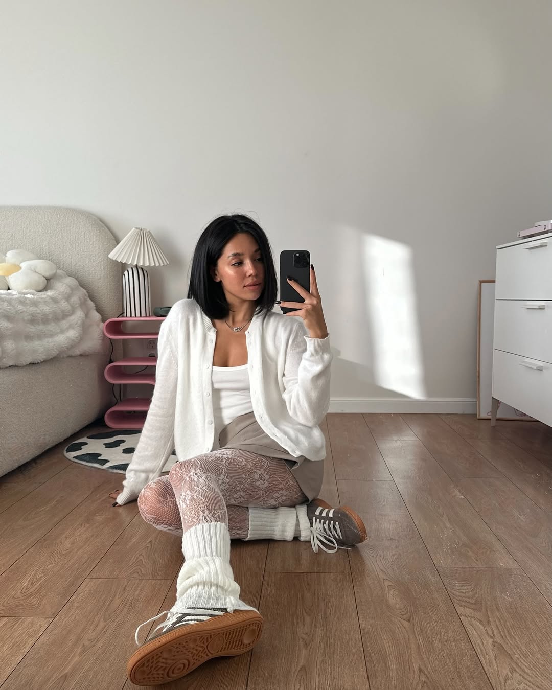 스포티하고 캐주얼한 룩에는 레그워머와 스니커즈의 조합이 제격입니다. 박시한 톱과 스커트에 레그워머를 루즈하게 내려 신고, 얇쌍한 스니커즈를 더하면 활동성과 러블리한 디테일을 동시에 살릴 수 있어요.