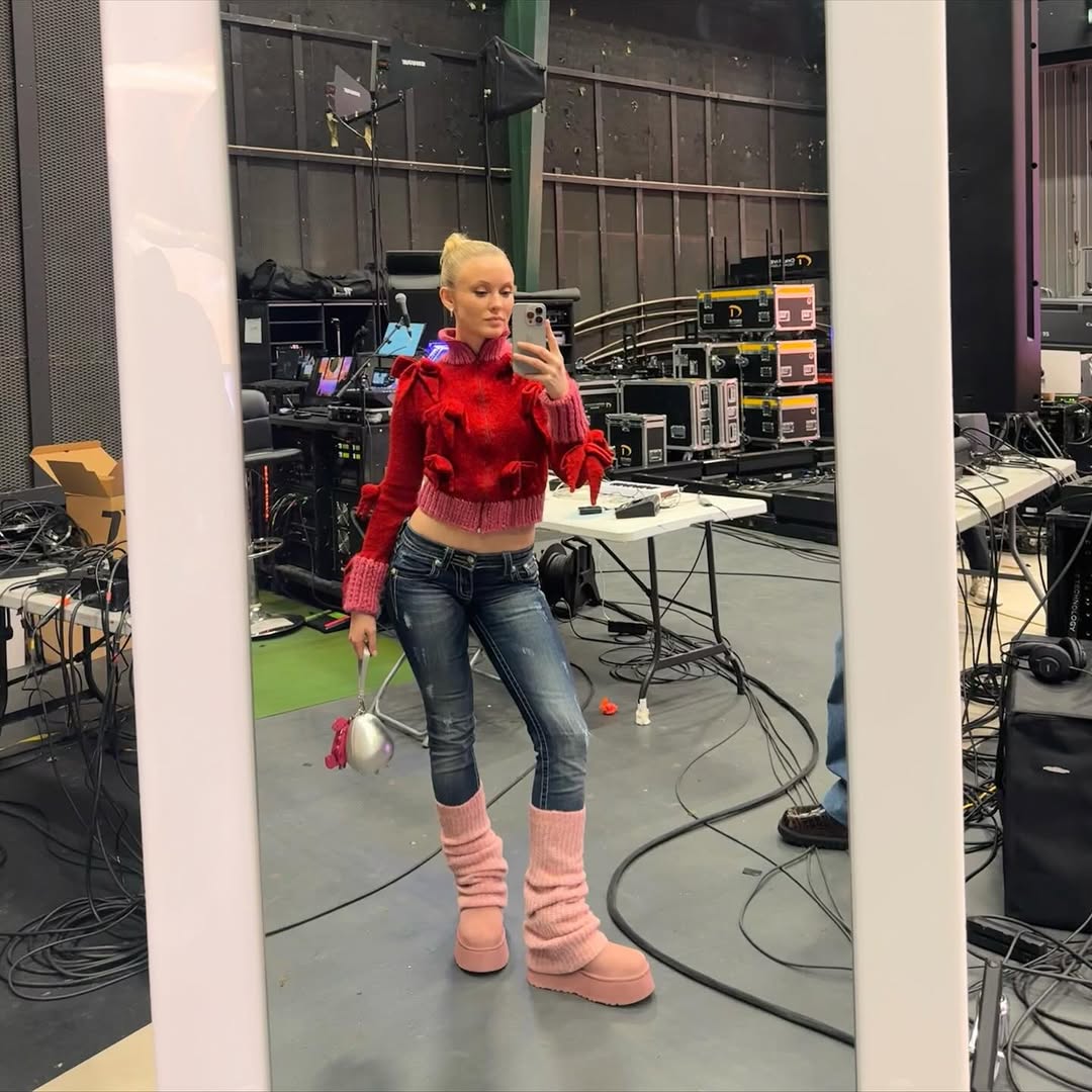 서서히 복귀 조짐을 보이는 스키니 진과 레그워머의 조합도 눈 여겨볼 만합니다. 스웨덴 싱어송라이터 자라 라슨은 빨간 니트 집업과 로우라이즈 스키니 진에 핑크 레그워머가 더해진 어그 부츠를 매치했는데요. 청키한 어그와 도톰한 레그워머가 발끝에 볼륨을 더하면서 룩을 한층 더 귀엽게 마무리했죠.