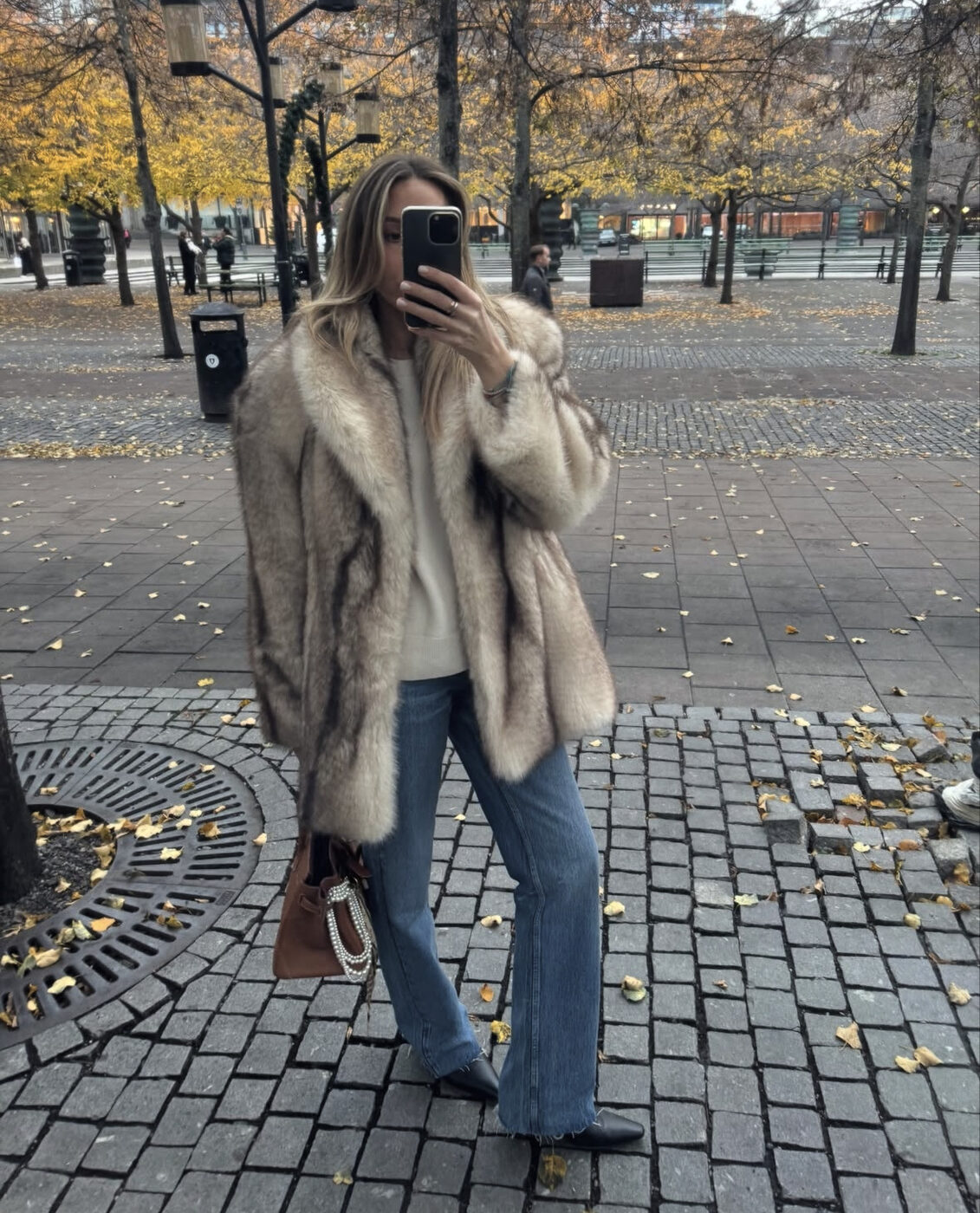 그리고 퍼 아우터는 지나치게 꾸민 느낌이 날 수 있는데, 데님은 이런 맛을 단번에 중화시켜주죠. 중청, 연청, 진청할 것 없이 모두 데일리하고 캐주얼하게, 퍼가 너무 드레스업 되지 않게요.