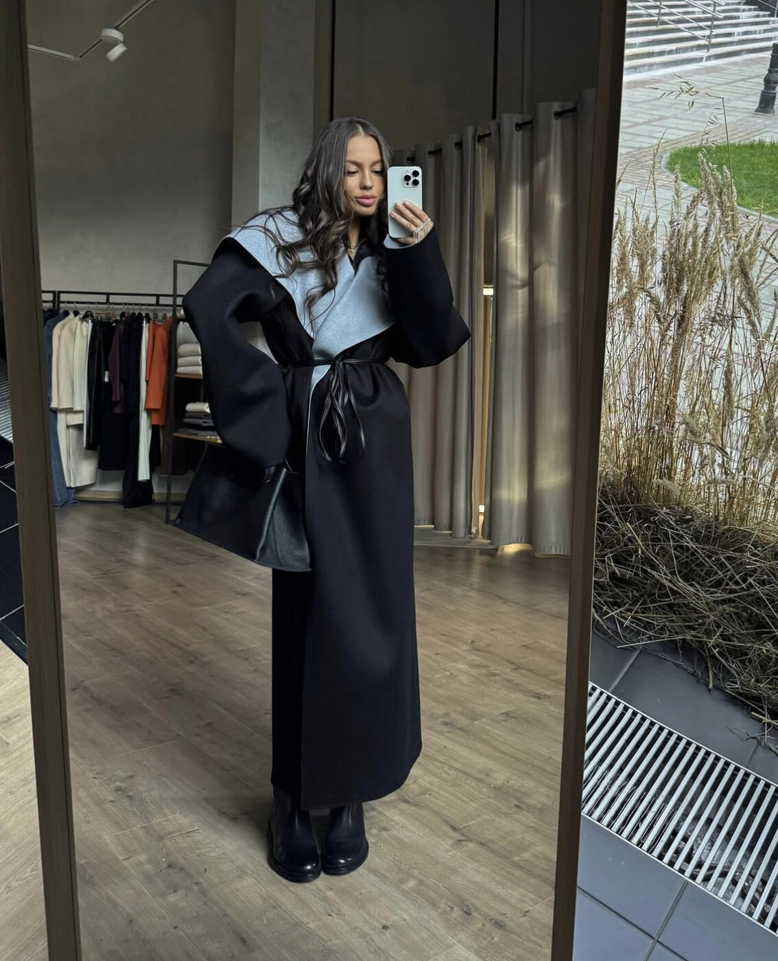 가운형 코트가 좋은 이유 중 하나는 안에 뭘 얼마나 입어도 과하게 보이지 않고, 만약 좀 튄다고 하면 벨트로 딱 허리를 묶어주면 그만입니다. 풀어서 입으면 가운, 위의 엘사와 마리나처럼 묶어주면 파인한 이미지로 대변신이 가능한 것인데요. 페미닌하게 연출할 수 있는 또 하나의 재미입니다. 출근이든, 약속에도 밖에 그냥 나갈 때도 어디에나 바로 입을 수 있는 만능 아이템이 아닐 수 없네요. 안에 뭘 입었는지도 중요하지 않겠죠. 특히 이런 롱 기장에서 그 효과가 확실히 보일 겁니다.