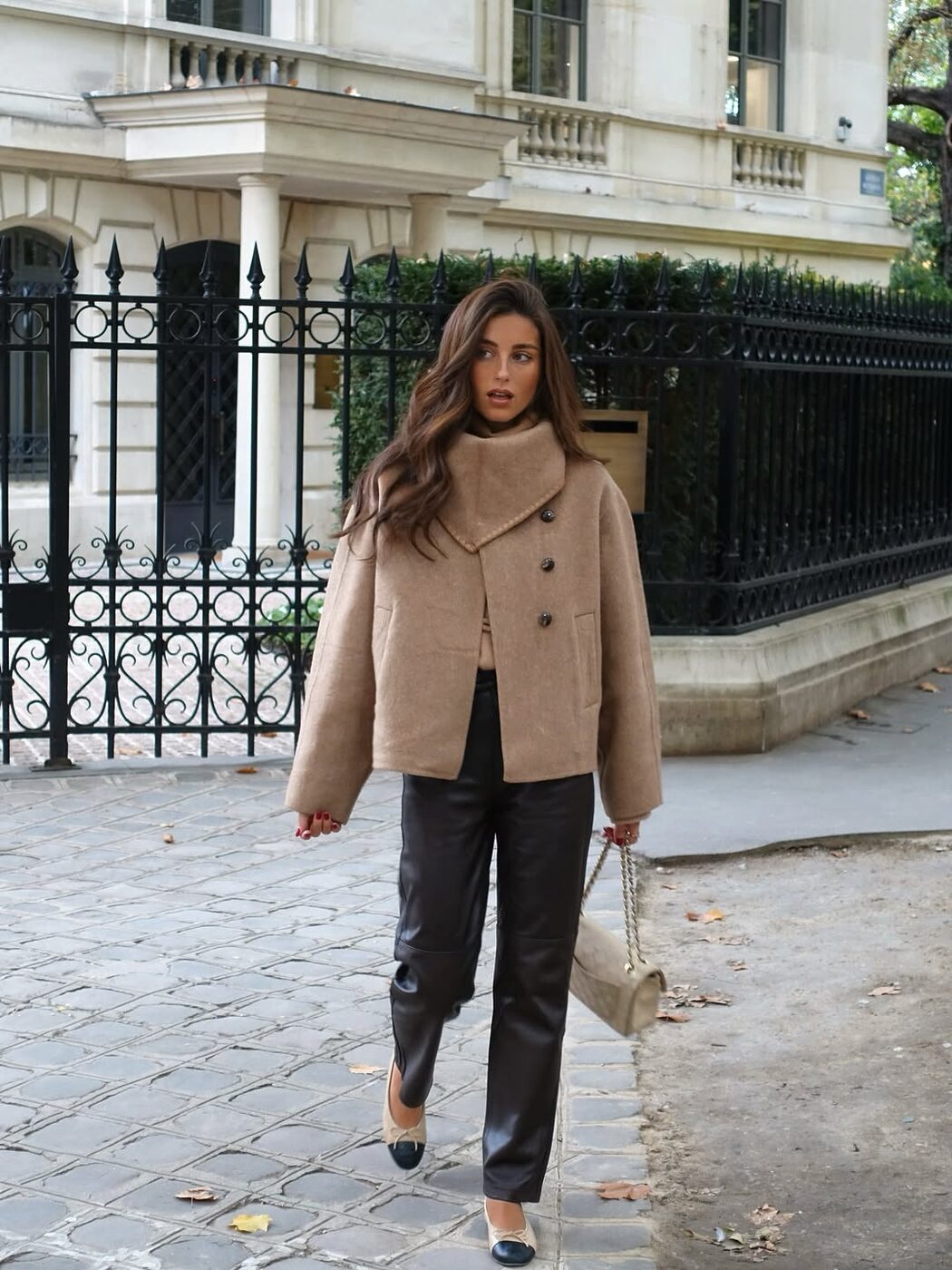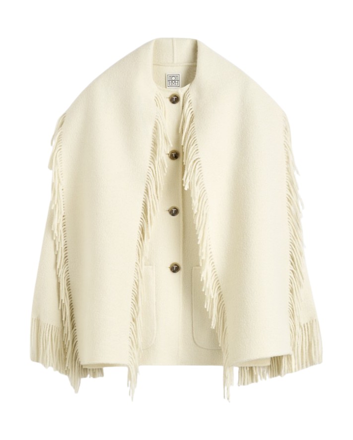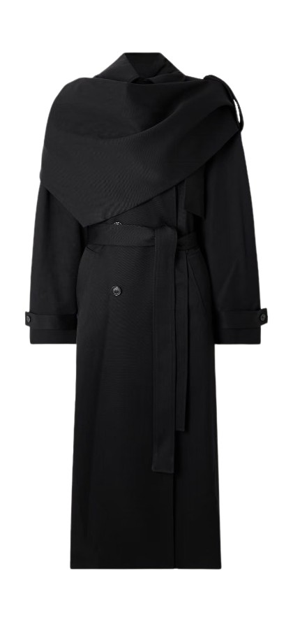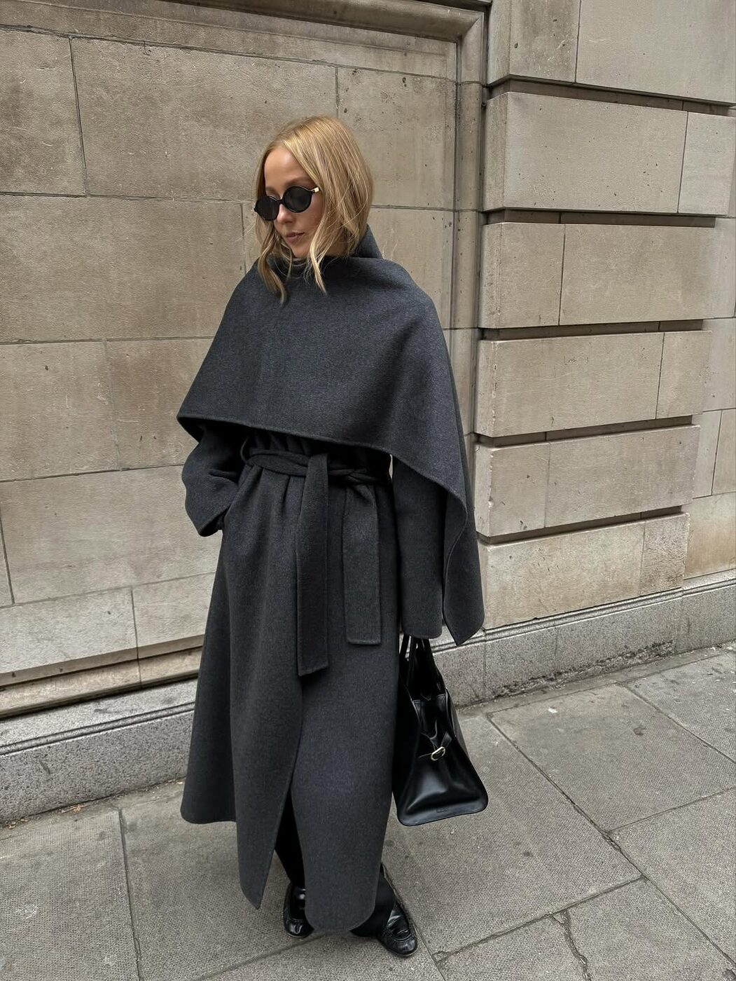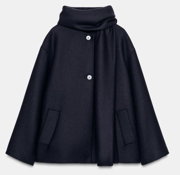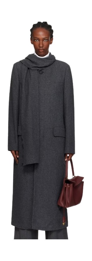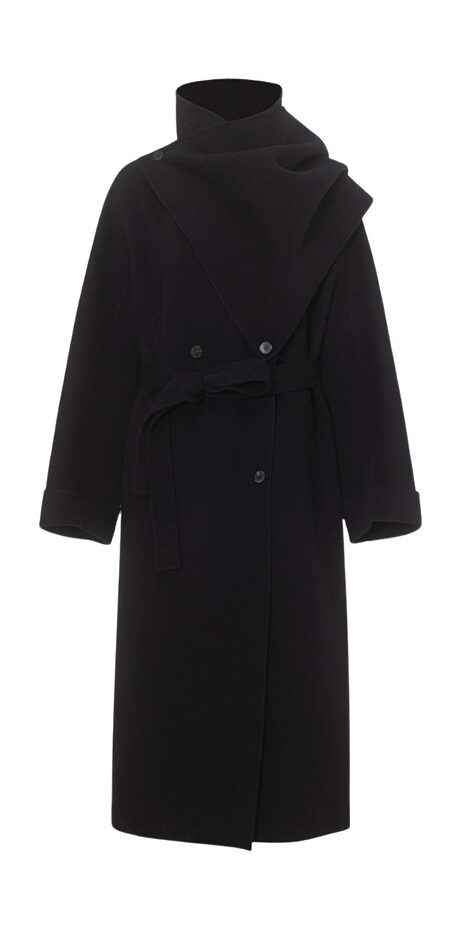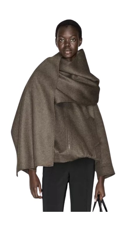 클래식한 로브형 코트 위에 케이프를 두른 듯한 디자인의 코트. 모던한 분위기는 지키되 몸을 감싸는 케이프 디테일 덕분에 우아함이 배가 되어 보이는 군요. 몸을 한번 더 감싸줘 칼바람을 더 잘 막아낼 수 있겠고요.