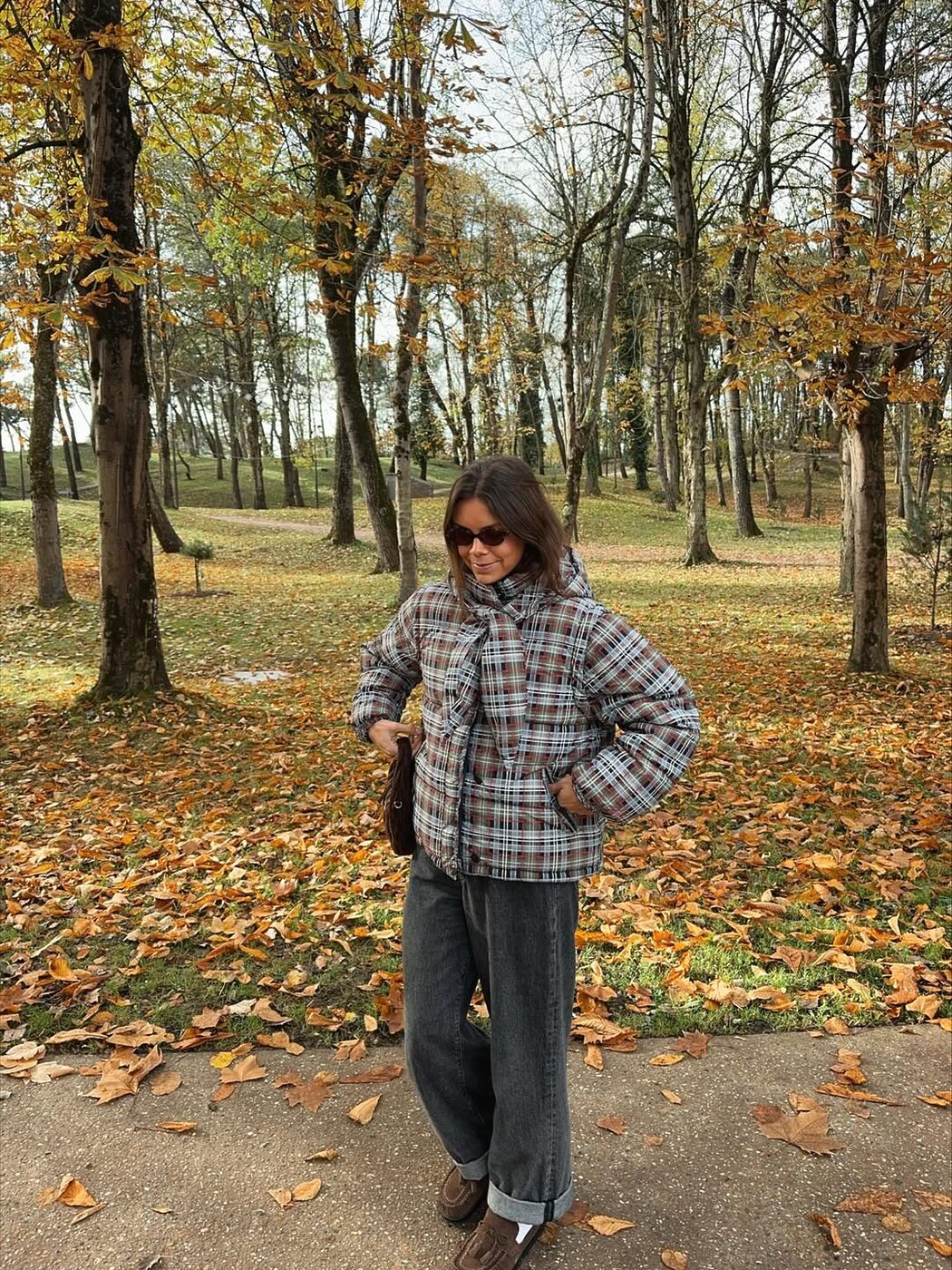 ‘목도리 세트’ 디자인은 정갈한 코트 뿐만 아니라 패딩에도 더해지고 있습니다. 체크 패턴 패딩 위에 짧막한 패딩 스카프가 올려지니 귀여움이 배가 되네요. 목도리를 따로 챙길 필요도 없어 손쉽게 스타일링을 완성할 수 있다는 것 역시 장점!