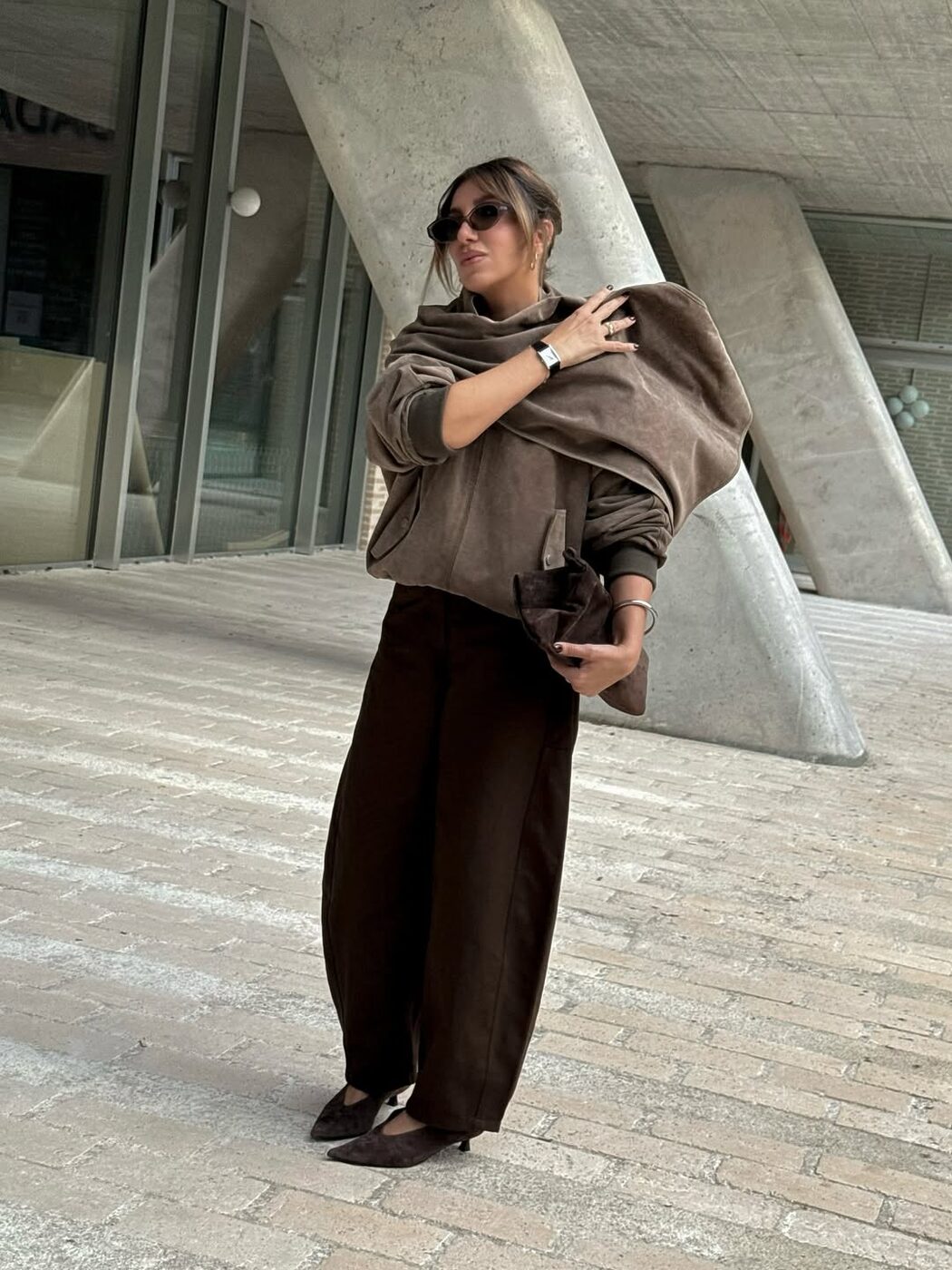 울 소재뿐만 아니라 스웨이드 소재의 재킷에서도 스카프 디테일이 포착됩니다. 소재를 가리지 않죠. 특히나 스웨이드 소재의 스카프는 쉽게 보기 힘든 아이템이라 더욱 눈길을 끄네요.