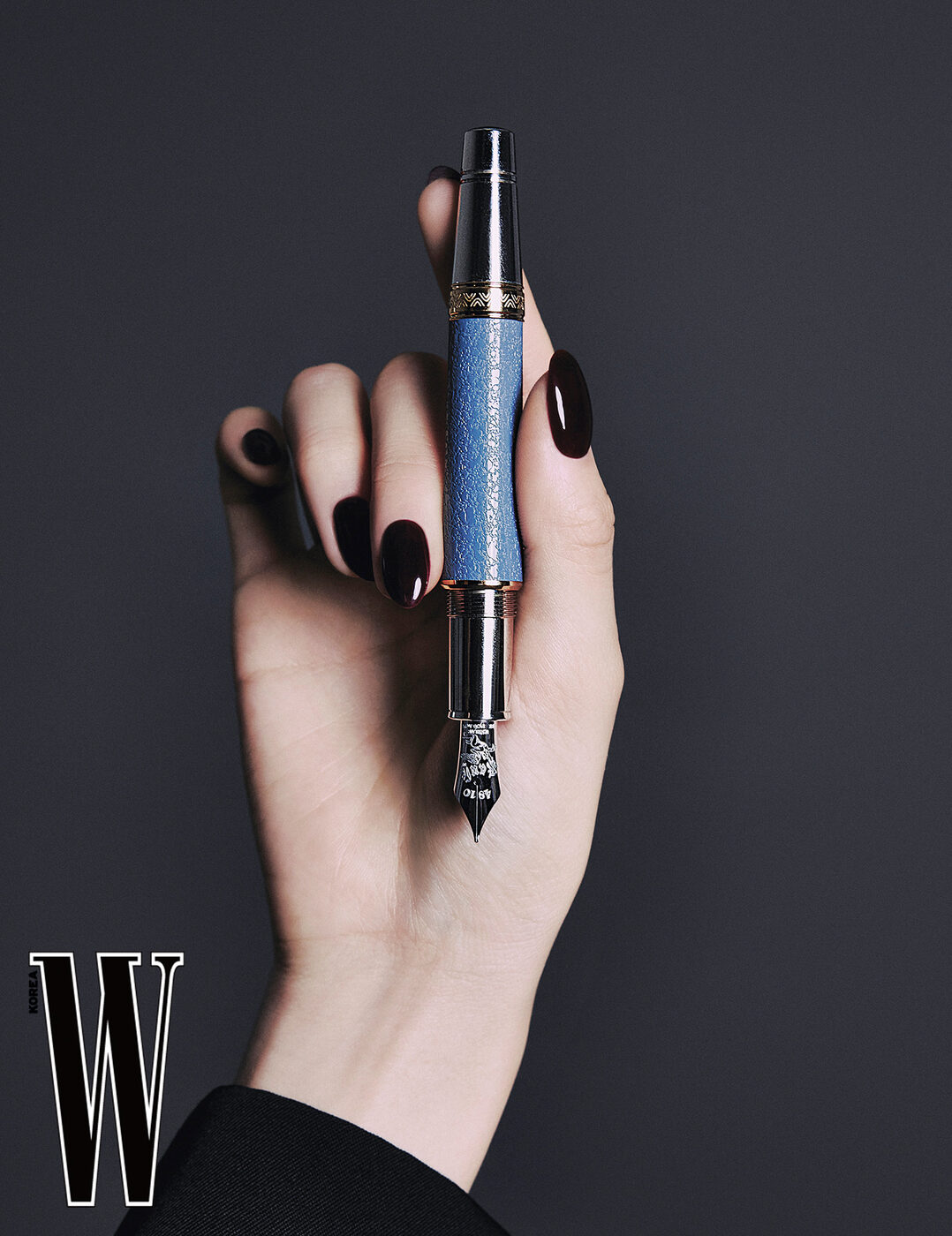 괴테는 문학가이자 여러 분야를 넘나들며 업적을 남긴 지성인이었다. 7월 출시된 몽블랑의 ‘작가 에디션 오마주 투 요한 볼프강 폰 괴테’ 리미티드 에디션은 과학과 식물학에도 조예가 깊었던 괴테의 면모를 힌트처럼 몸 곳곳에 심어두었다. 캡 디자인은 실험용 유리병 형태에서 아이디어를 얻은 것이고, 클립은 잎사귀 모양이다. 닙에 각인된 ‘Faust’는 1790년 <파우스트> 오리지널 판본에 쓰인 서체를 따랐다. 캡과 배럴은 블루 그레이 색조에 대리석 질감인데, 괴테의 바이마르 자택에 있는 벽지에서 영감 받은 것이다. <서초동>의 변호사 강희지처럼 그 펜을 쥐고 있던 문가영은 만년필 혹은 잉크의 세계 이야기만 해도 한참을 말할 수 있을 것 같다고 했다. “제가 만년필을 좋아하는 이유 중 하나는 쓰던 만년필을 누군가에게 줄 때 그 의미가 아주 크고 남다르다고 느껴서예요. 저도 <사랑의 이해> 작가님이 쓰던 만년필을 선물로 받은 적이 있어요. 만년필을 꾸준히 모으면, 언젠가 소중한 이에게 건네줄 수도 있겠죠. 대대로 물려줄 수도 있고요. 참 낭만적이죠.”