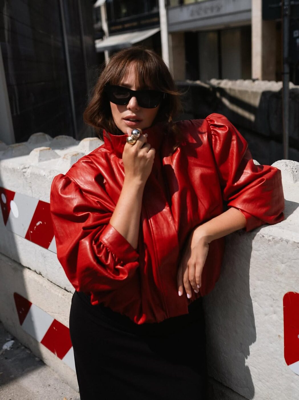 평소 자주 입지 않는 아이템으로 홀리데이 무드를 즐기고 신선함을 주는 것 역시 좋은 선택이죠. 좀처럼 쉽게 입지 못했던 레드 컬러의 아우터처럼요. 쿨하고 스타일리시한 룩을 완성하려면 너무 얌전한 코트나 캐주얼한 패딩보다는 가죽 점퍼 같은 카테고리가 베스트 해답이 되죠.