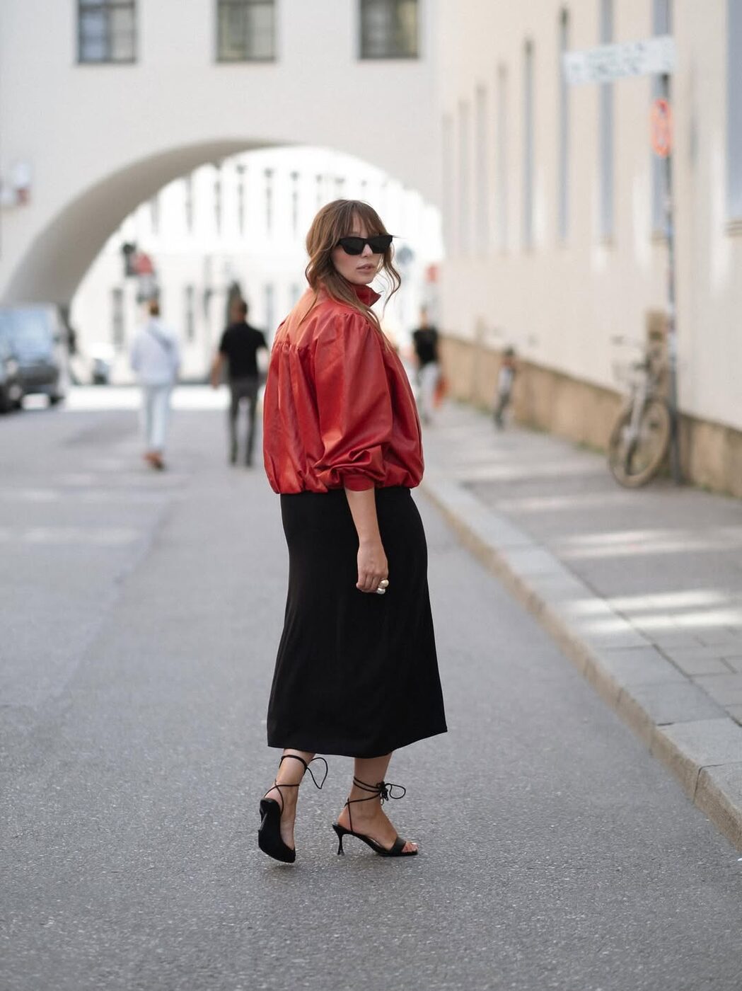 시끌벅적한 파티 분위기보다는 정제된 옷차림이 필요할 때도 있죠. 이럴 땐 평소 입던 포멀한 아이템에 컬러만 바꿔준다고 생각하면 쉬운데요. 예를 들어 날렵한 펜슬 스커트 같은 아이템을 레드로 컬러만 바꿔주는 것처럼요. 배우 테사 톰슨처럼 레드 소재의 펜슬 스커트에 단정한 가디건, 키튼 힐이라면 연말의 분위기는 내되 정갈한 룩을 연출할 수 있습니다.