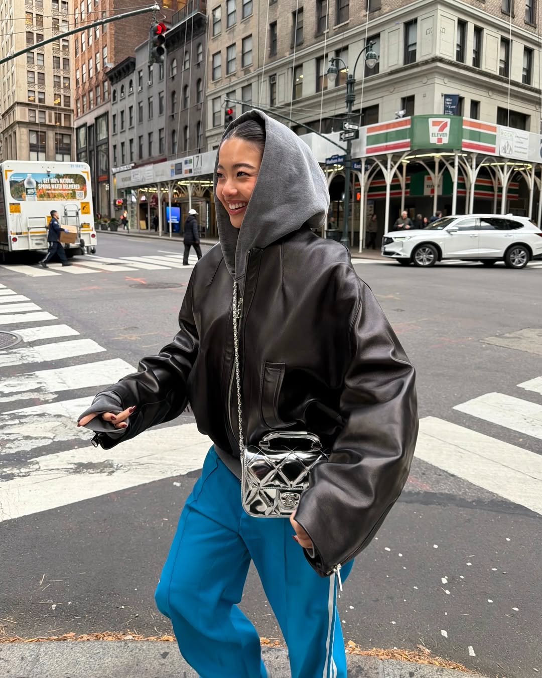 블루는 겨울 하늘처럼 청량한 느낌을 주면서 활기찬 분위기를 만들어줘요. 특히 그레이나 베이지 같은 뉴트럴 톤과 만났을 때 더욱 돋보이죠. 스니커즈나 패딩과 매치하면 캐주얼하고 스포티하게, 부츠나 로퍼, 코트와 매치하면 단정하고 깔끔하게 연출할 수 있어요. ‘회추’의 칙칙함에서 벗어나 화사한 변화를 원한다면 블루 추리닝이 딱이에요.