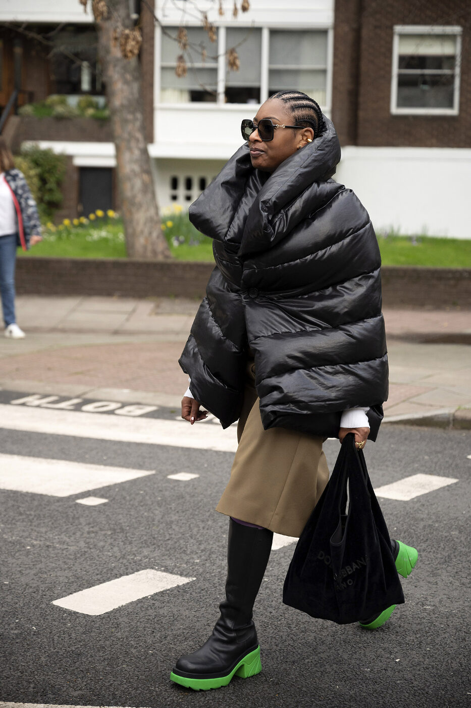 꽁꽁 싸맨 겨울 룩 사이에서 남들과는 다른 패딩 스타일을 연출하고 싶다면 주목해보세요. 블랙 패딩도 디자인에 따라 분위기가 완전히 달라집니다. 몸을 감싸는 케이프형 블랙 패딩에 쇼츠 그리고 아웃솔이 포인트인 부츠를 매치해보세요. 보온성과 스타일, 두 가지를 동시에 잡는 겨울 룩이 완성됩니다.