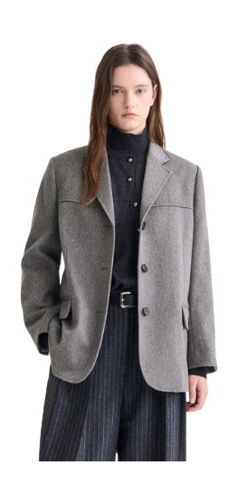 클래식한 실루엣에 소재 특유의 따스한 기운이 가미된 울 재킷은 자연스러운 듯 우아한 느낌을 연출하기 좋습니다. 겨울에 어울리는 차분한 감성을 더욱 살리려면 상의와 이너, 하의의 색감을 맞춰 톤온톤 또는 톤인톤 스타일링을 시도하거나 아예 한 가지 컬러로 통일한 셋업 스타일에 도전해 보세요. 누구나 손쉽게 근사한 미니멀 룩을 완성할 수 있을 거예요.