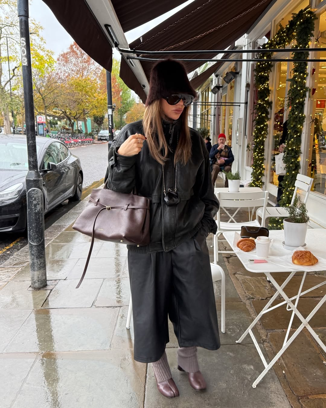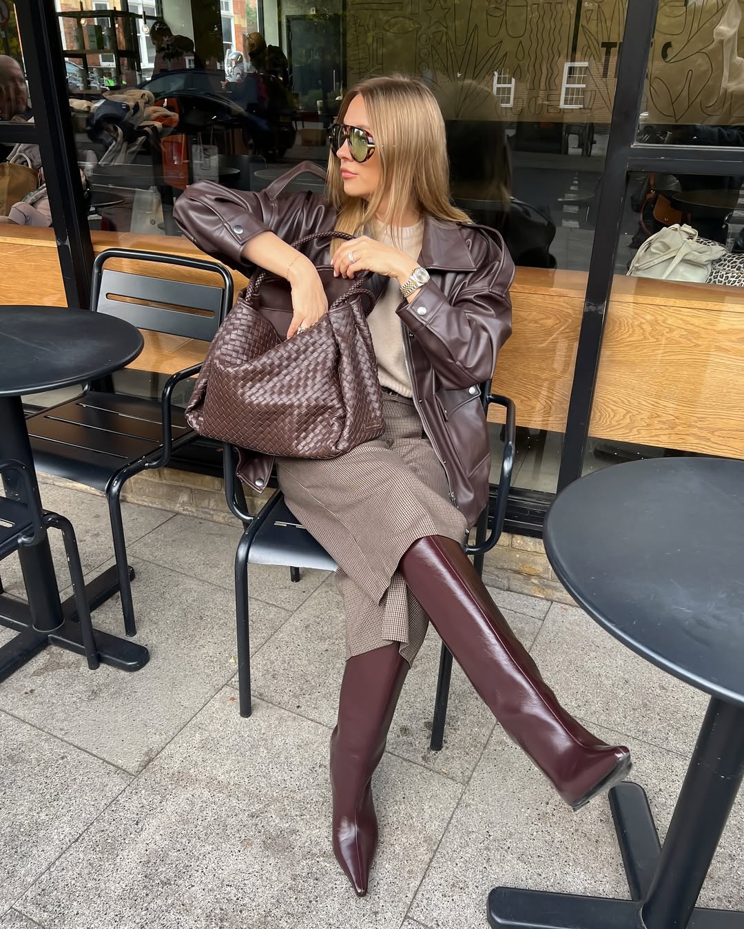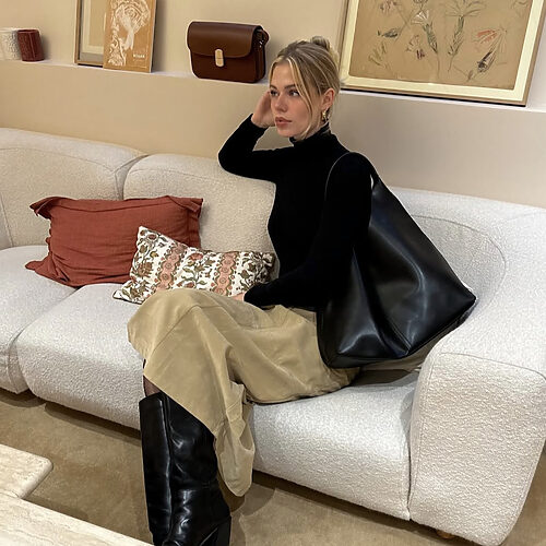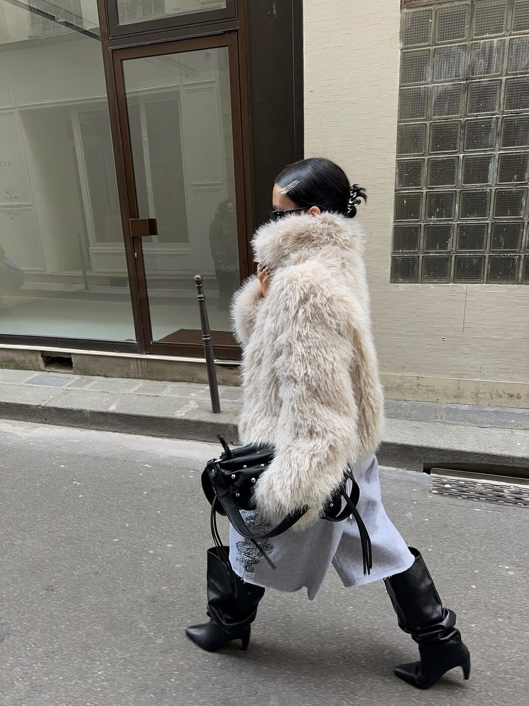 버뮤다 팬츠를 겨울에 가장 쉽게 소화하는 방법은 롱부츠와 매치하는 겁니다. 팬츠 기장이 무릎 아래로 떨어지기 때문에 롱부츠와 만났을 때 보온을 챙길 수 있어요. 그리고 바지와 부츠의 톤을 맞춰주면 팬츠 밑단에서 부츠로 이어지는 라인이 자연스럽게 연결되면서 다리가 훨씬 길어 보이는 효과까지 챙길 수 있죠.