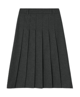 도톰한 울 소재의 플리츠 스커트에는 같은 그레이 컬러의 니트를 매치해 셋업처럼 연출해 보세요. 따뜻한 소재와 실루엣이 조화를 이뤄 고급스러운 분위기를 내기 좋습니다. 여기에 슬림한 레더 벨트로 허리 라인을 강조하면 실루엣을 좀 더 정리할 수 있죠.