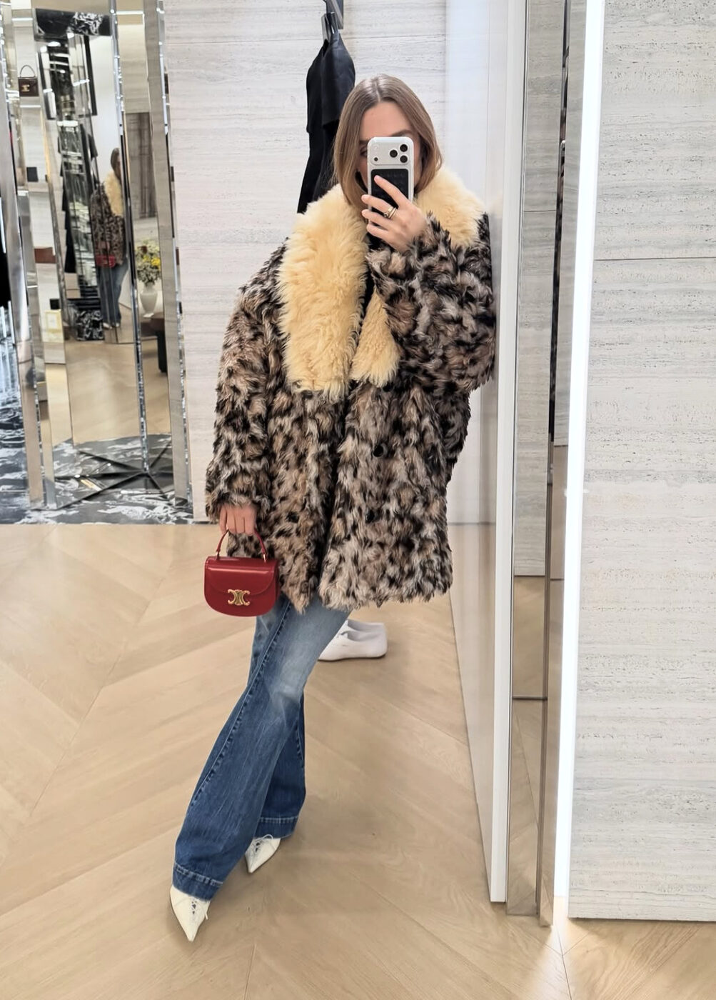 듣기만해도 부담스러운 레오퍼드 패턴의 퍼 코트라니요, 하지만 이 과하디 과한 아이템도 함께 입는 아이템에 따라 최종 무드가 결정됩니다. 화려한 파티 룩도, 고급스러운 글램 룩도 가능하죠. 하지만 그 무엇보다 우리에겐 일상에서도 입을 수 있는 스타일링이 가장 필요한것 아니겠어요? 그럴 땐 어김없이 청바지를 꺼내 보세요. 그 흔하디 흔한 아이템 하나만으로 복부인 스타일이 아닌, 올겨울 가장 힙한 무드의 룩을 완성할 수 있답니다.