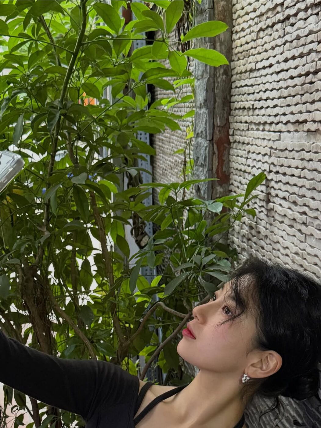 김민하의 앞머리는 독특한 쉐이프로 개성 넘치는 아웃핏을 완성합니다. 핑킹 가위로 자른 듯 비정형적인 뱅의 이름은 ‘크랙뱅’. 이는 가벼운 질감의 앞머리로 삐뚤삐뚤한 실루엣이 매력이죠. 유니크한 스타일을 추구한다면 시도해 볼 만한 헤어입니다.