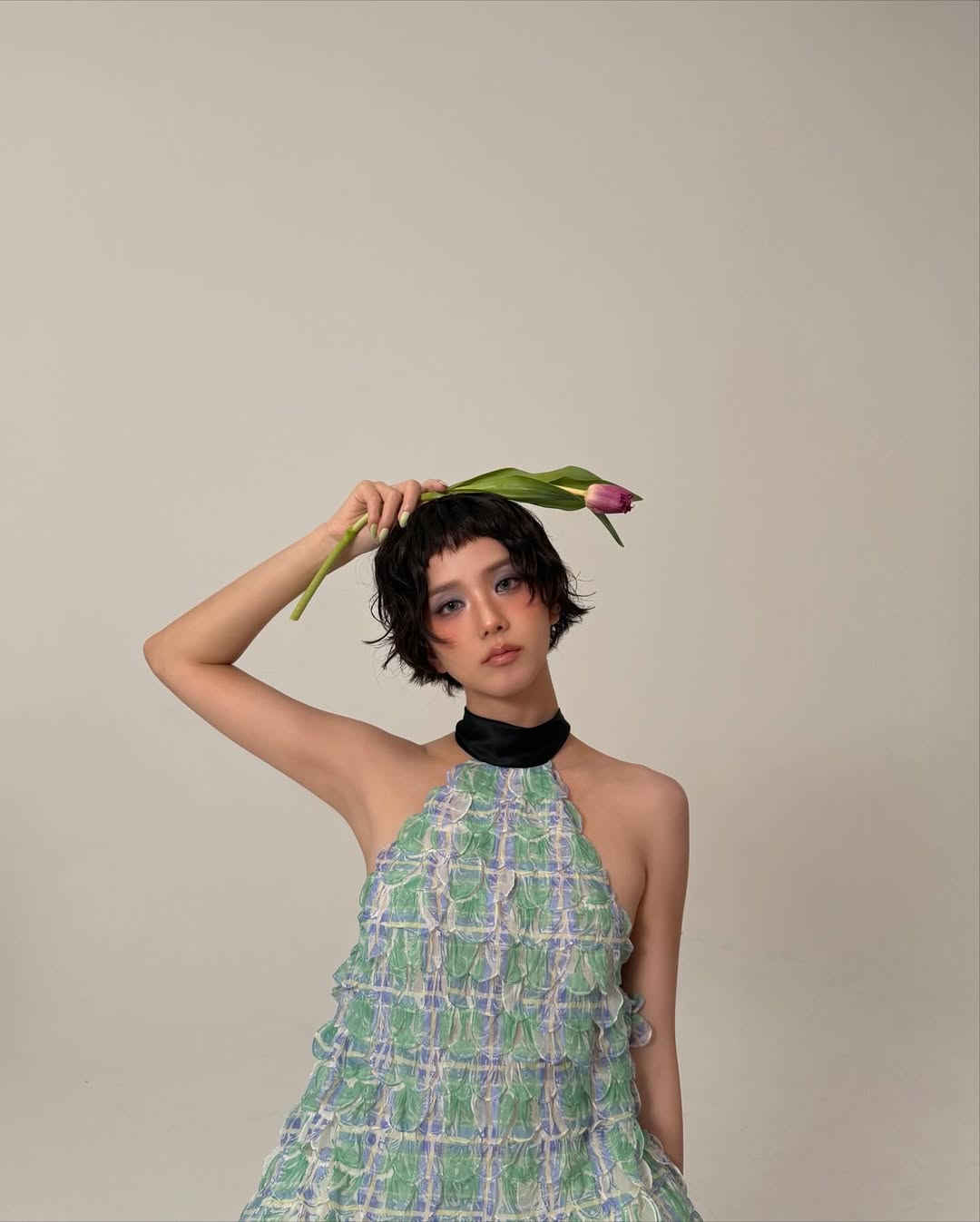 처피뱅 트렌드는 올겨울에도 유효합니다. 다만 더 짧아졌죠. 지수는 이마를 고스란히 드러내는 짧은 처피뱅으로 러블리한 룩을 선보였습니다. 처피뱅은 짧은 단발머리와 함께해보세요. 연말과 잘 어울리는 특별한 룩이 완성됩니다.